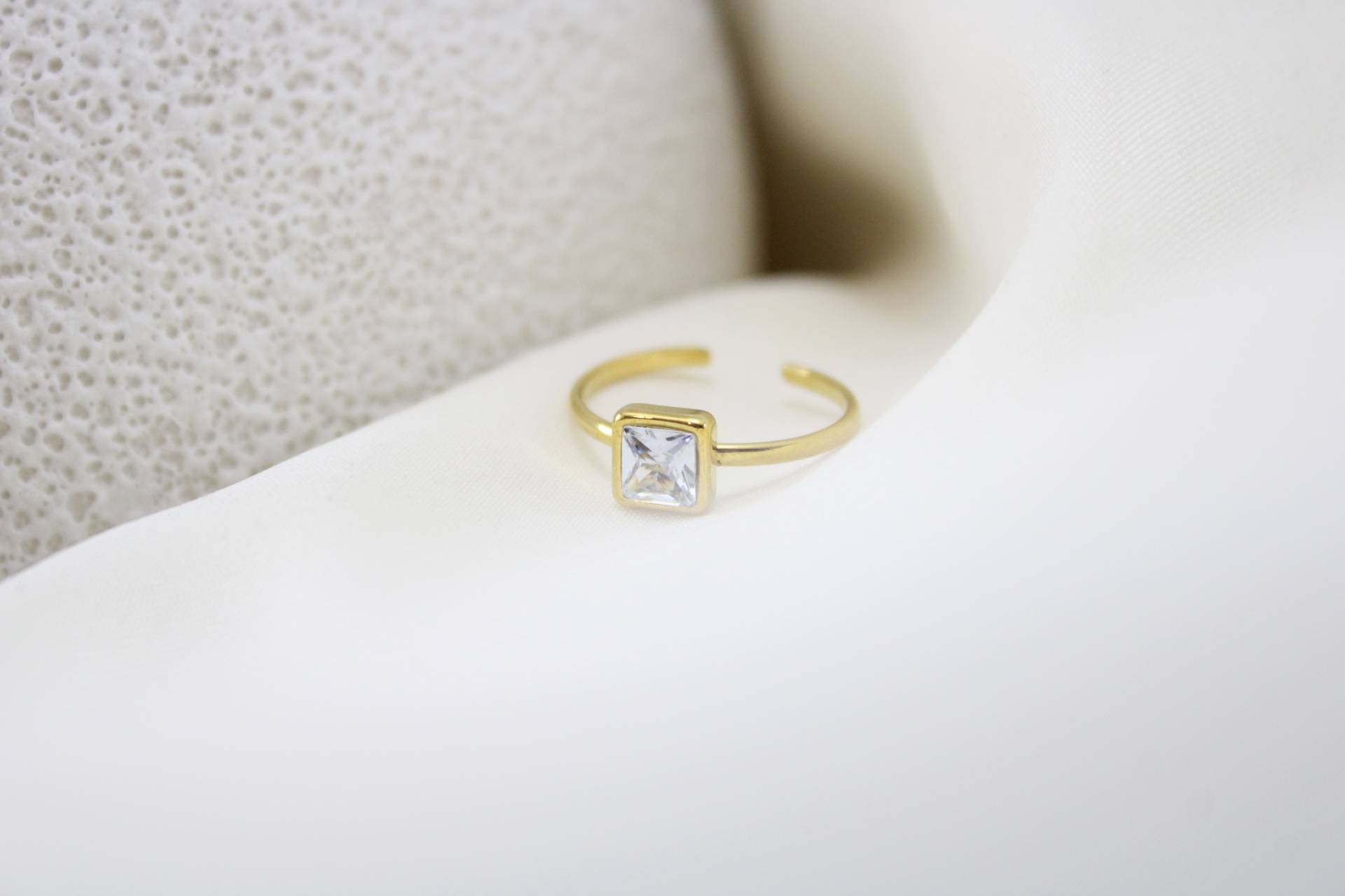 טבעת אבן מרובעת בציפוי זהב חומר גלם סטיילס סטיל בציפוי זהב