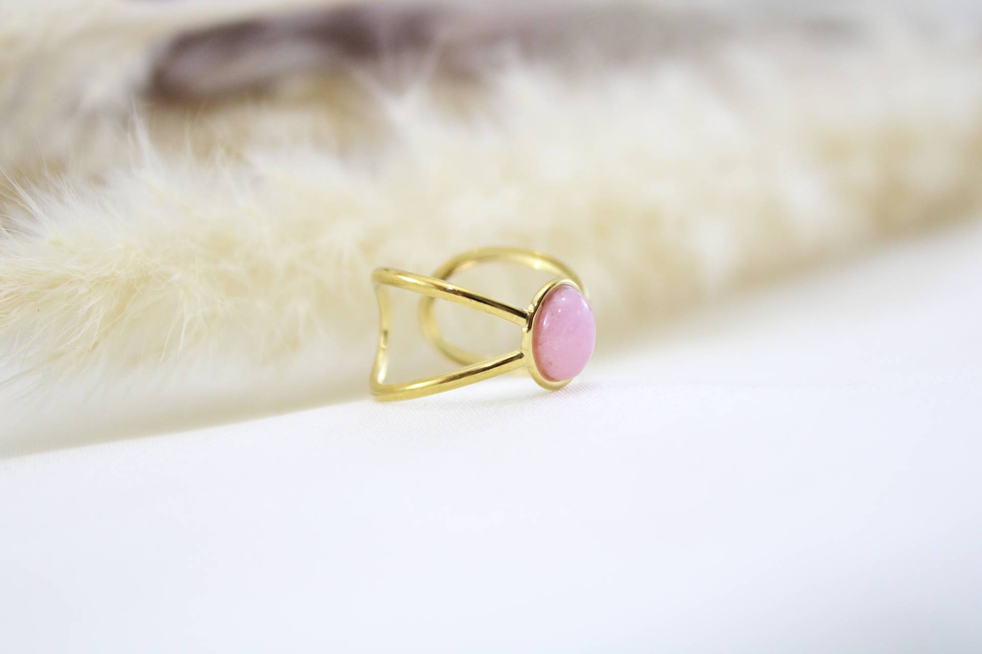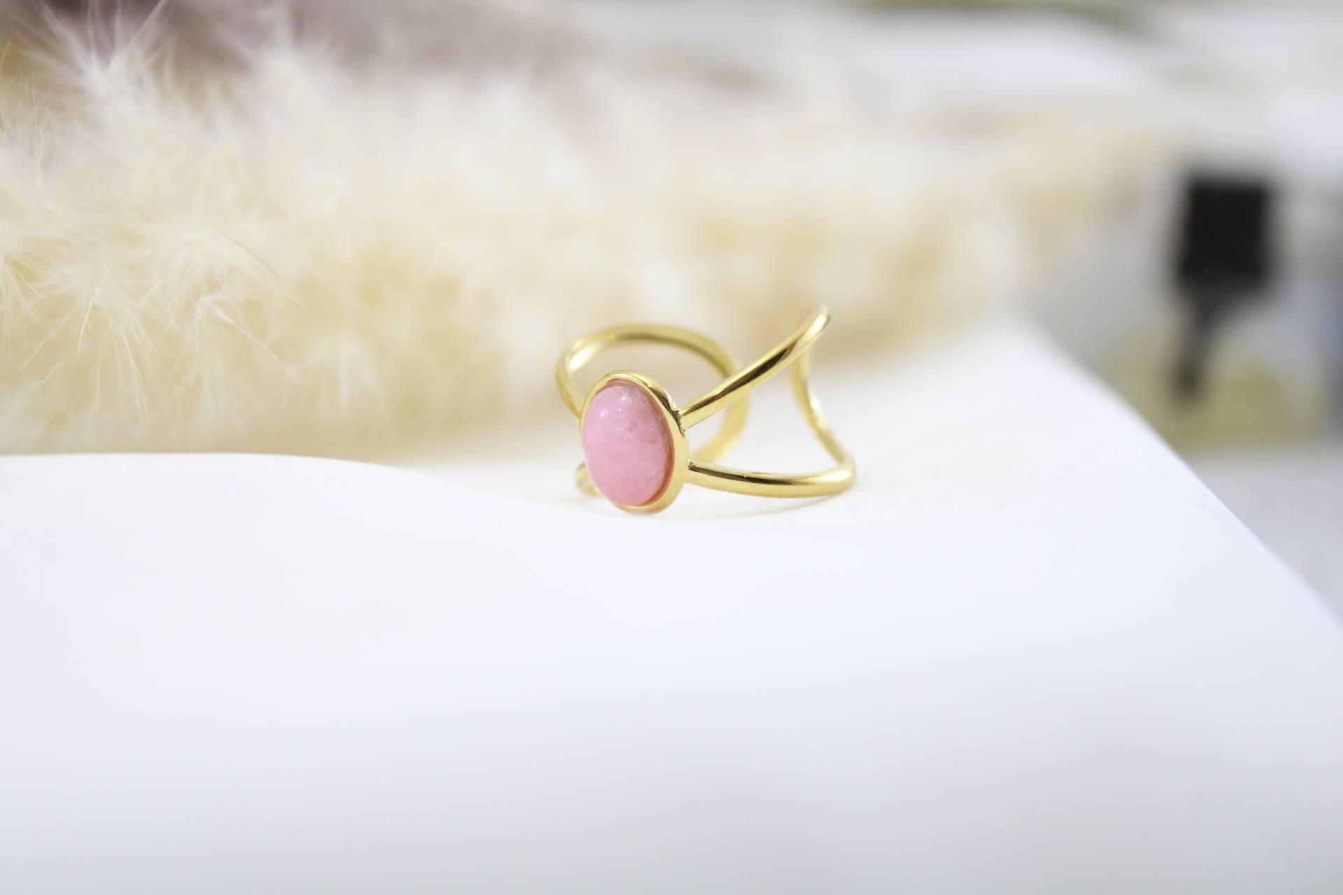 טבעת איקס בציפוי זהב בשילוב אבן ורודה חומר גלם: סטיינלס סטיל בציפוי זהב