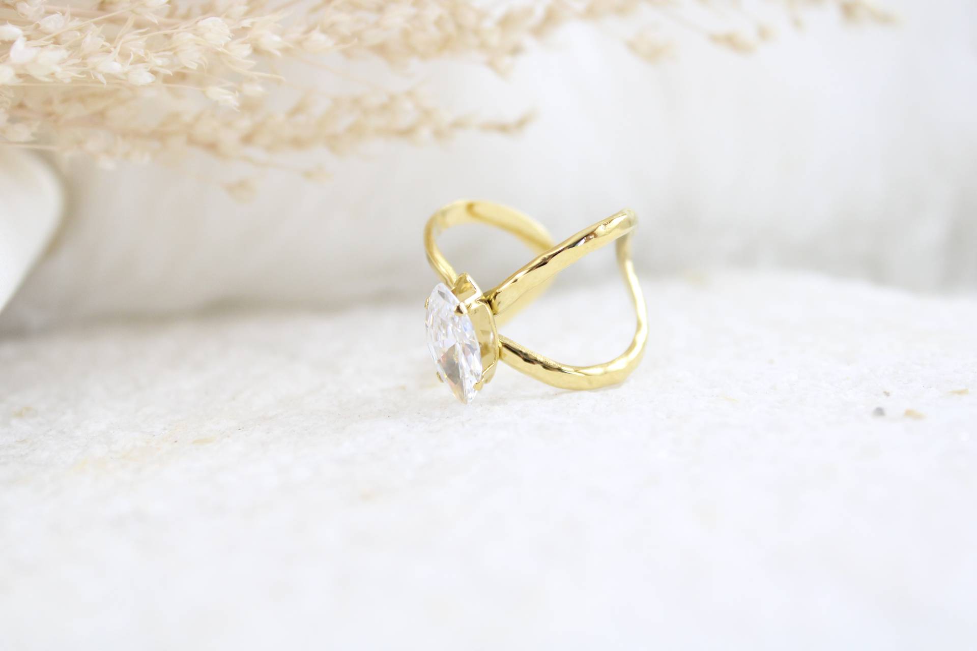 טבעת איקס עבה בשילוב זרקון חומר גלם: סטיינלס סטיל בציפוי זהב