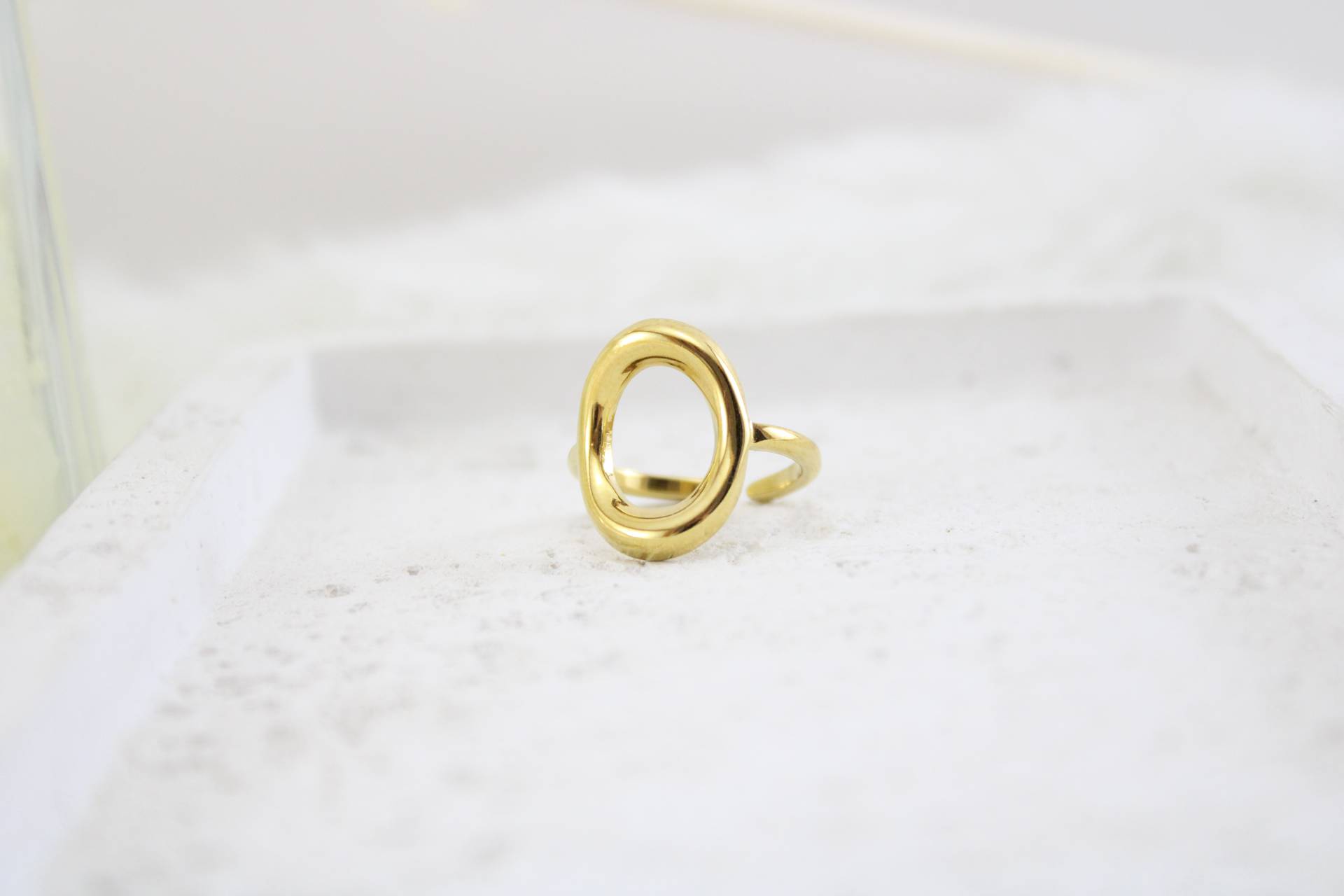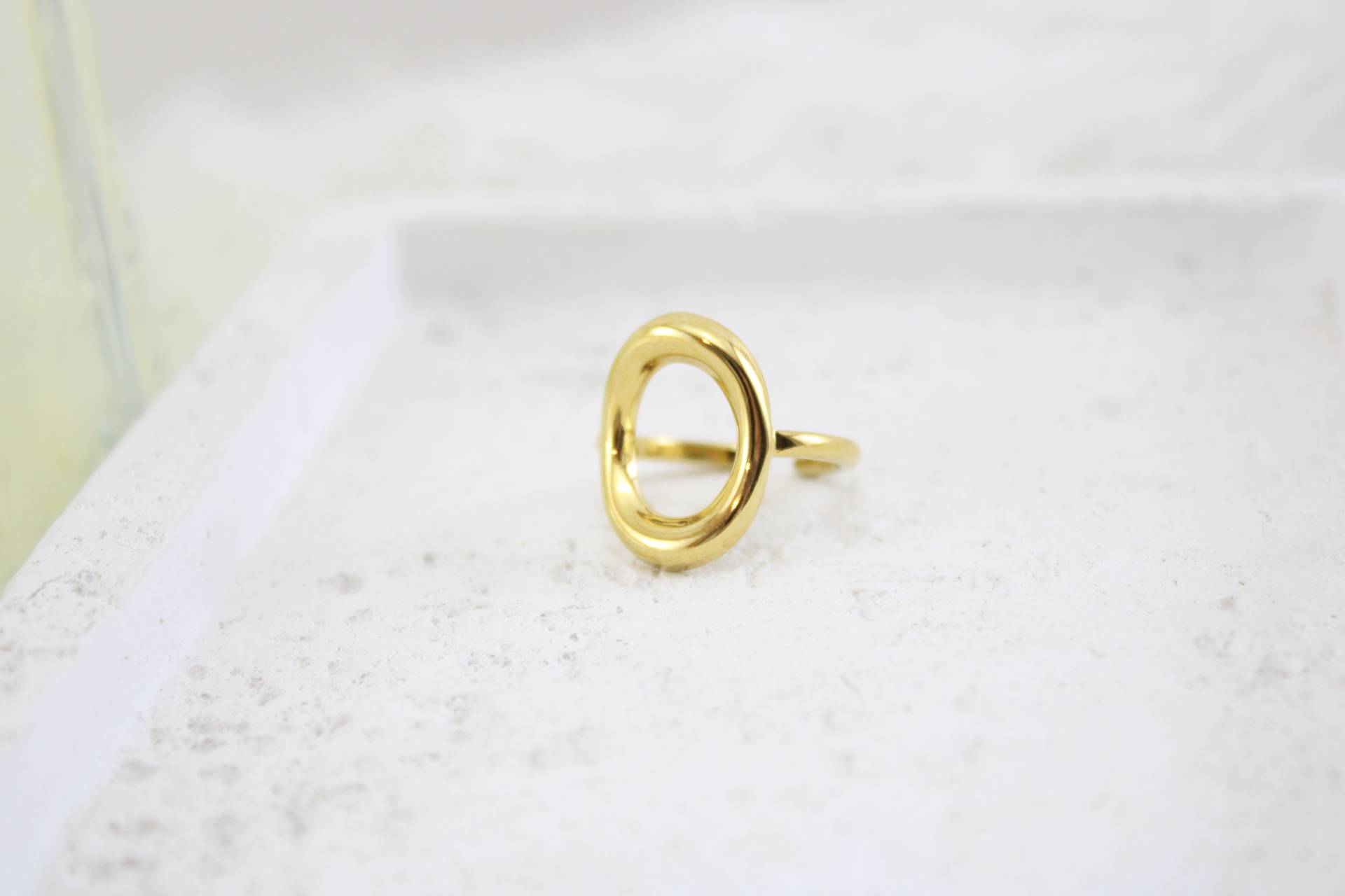 טבעת אליפסה עבה בציפוי זהב חומר גלם: סטיינלס סטיל בציפוי זהב