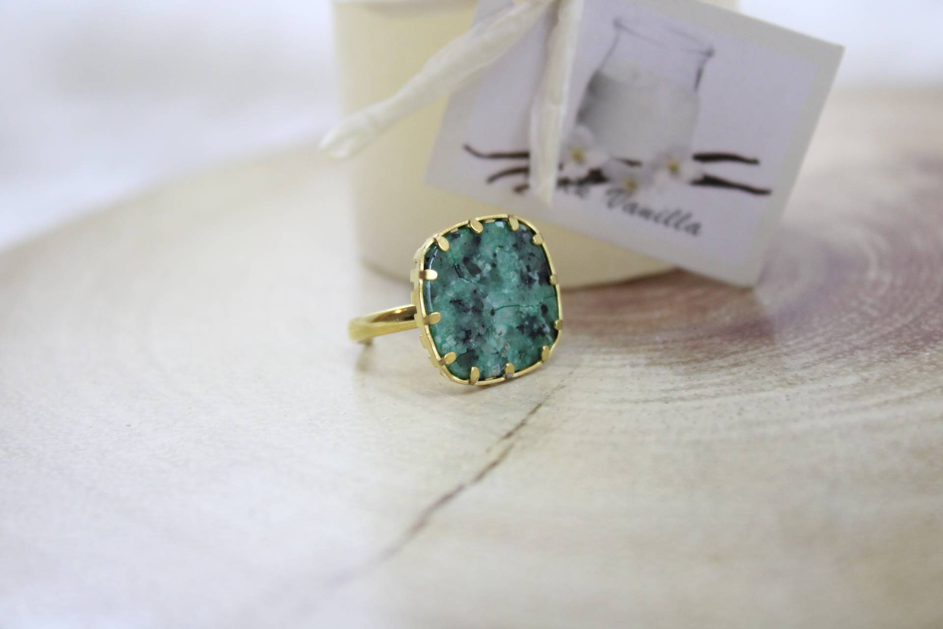 טבעת בשילוב אבן ירוקה גדולה חומר גלם סטיילס סטיל בציפוי זהב