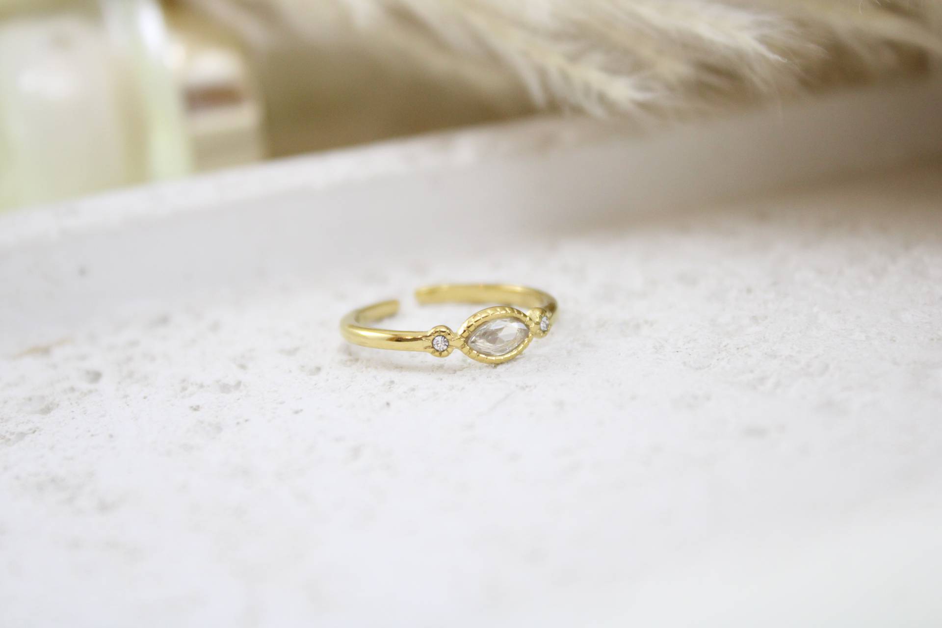טבעת בשילוב זרקון טיפה בציפוי זהב חומר גלם: סטיינלס סטיל בציפוי זהב