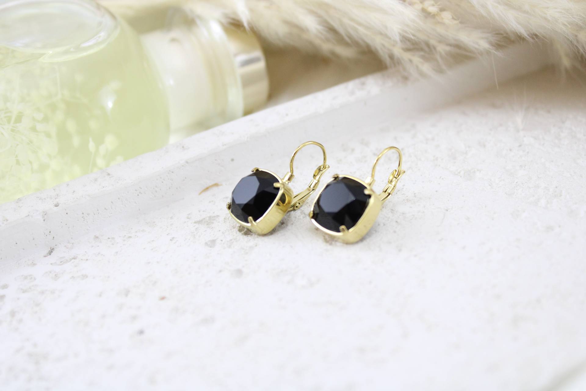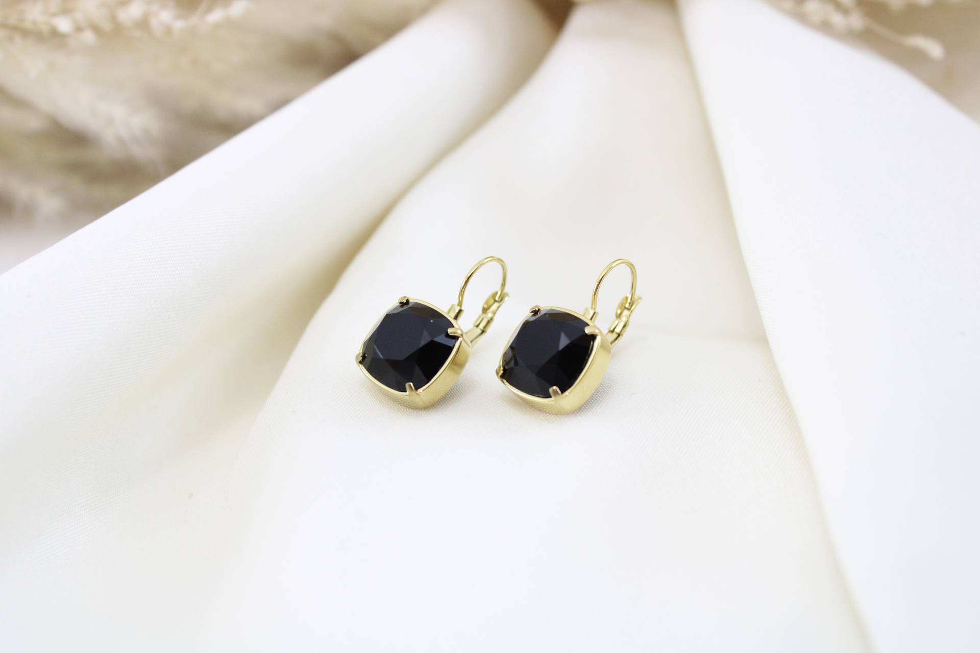 עגילים בשילוב אבן שחורה גדולה מרובעת