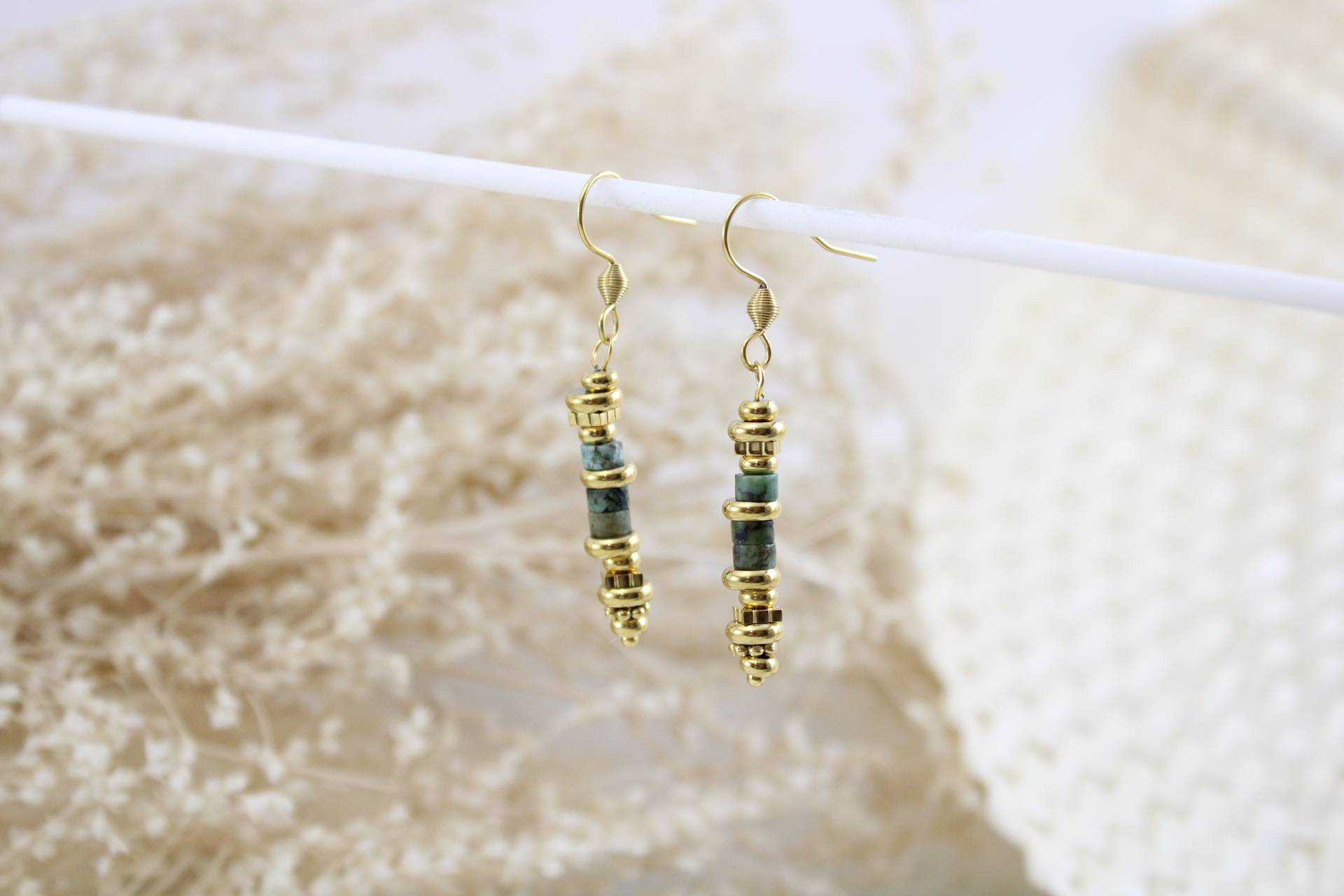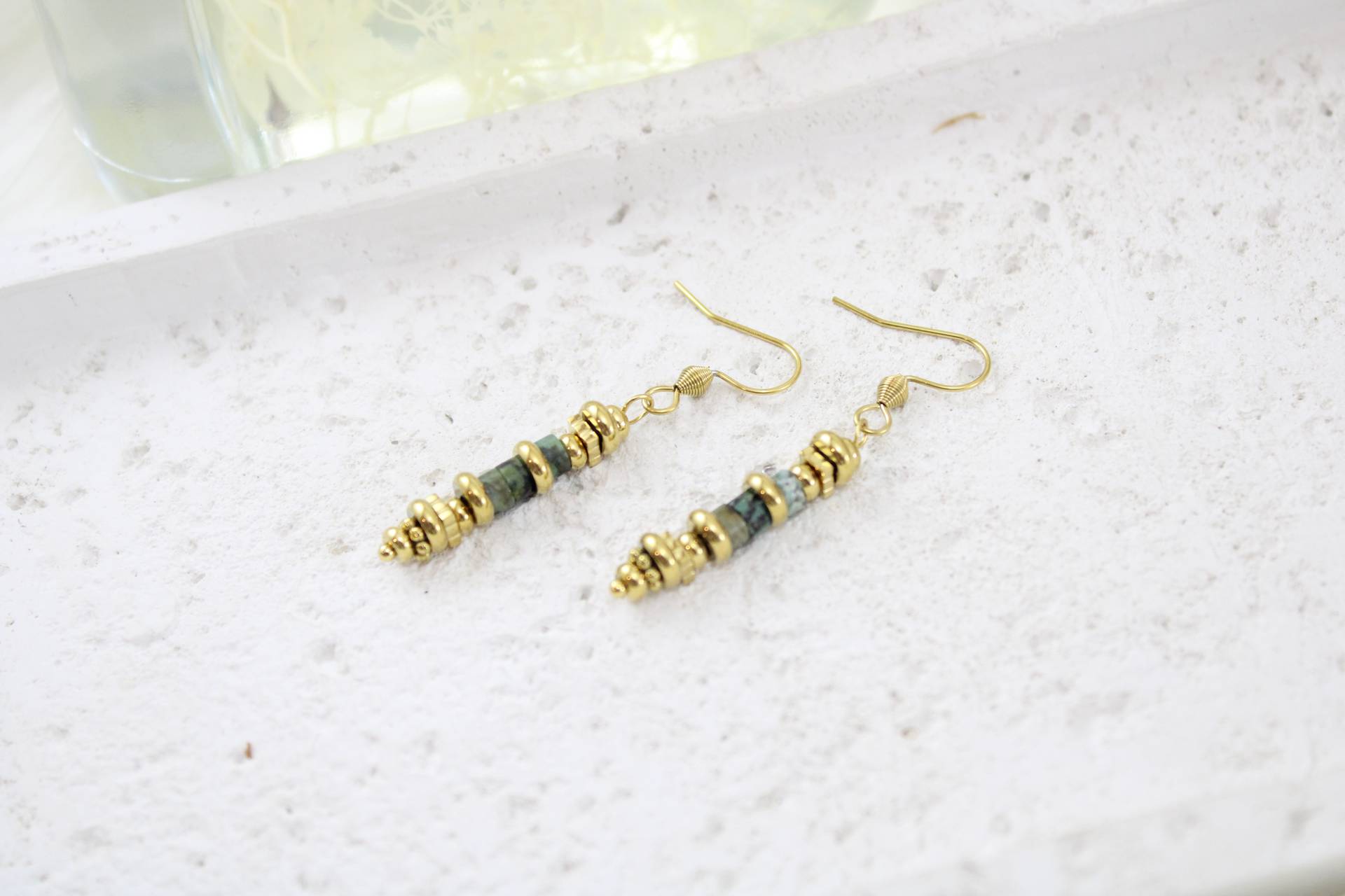 עגילים נופלים בשילוב אבנים ירוקות חומר גלם: סטיינלס סטיל בציפוי זהב