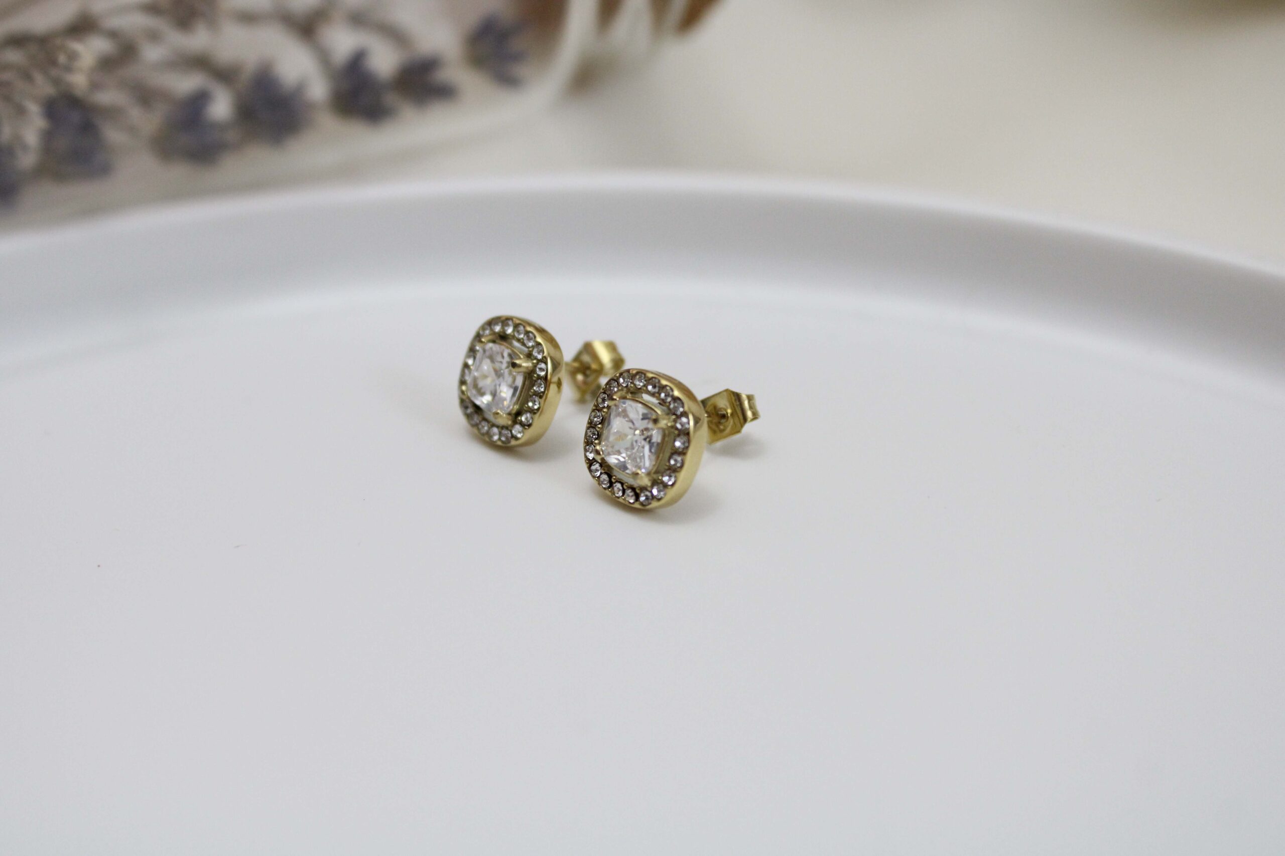 עגילים צמודים משובצים בציפוי זהב חומר גלם: סטיינלס סטיל בציפוי זהב