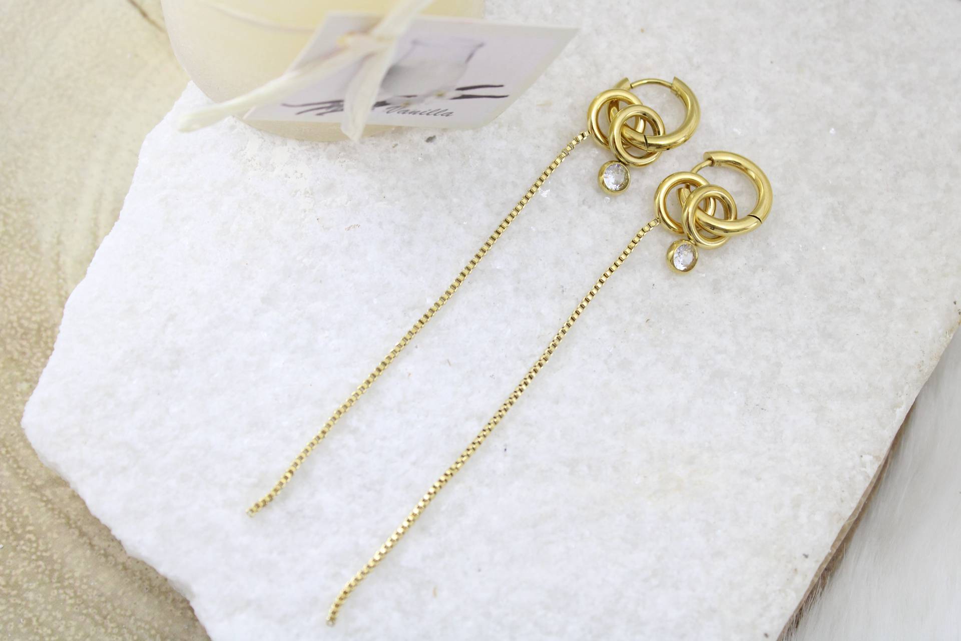 עגילי חישוק זרקון וחוט נופל חומר גלם סטיילס סטיל בציפוי זהב