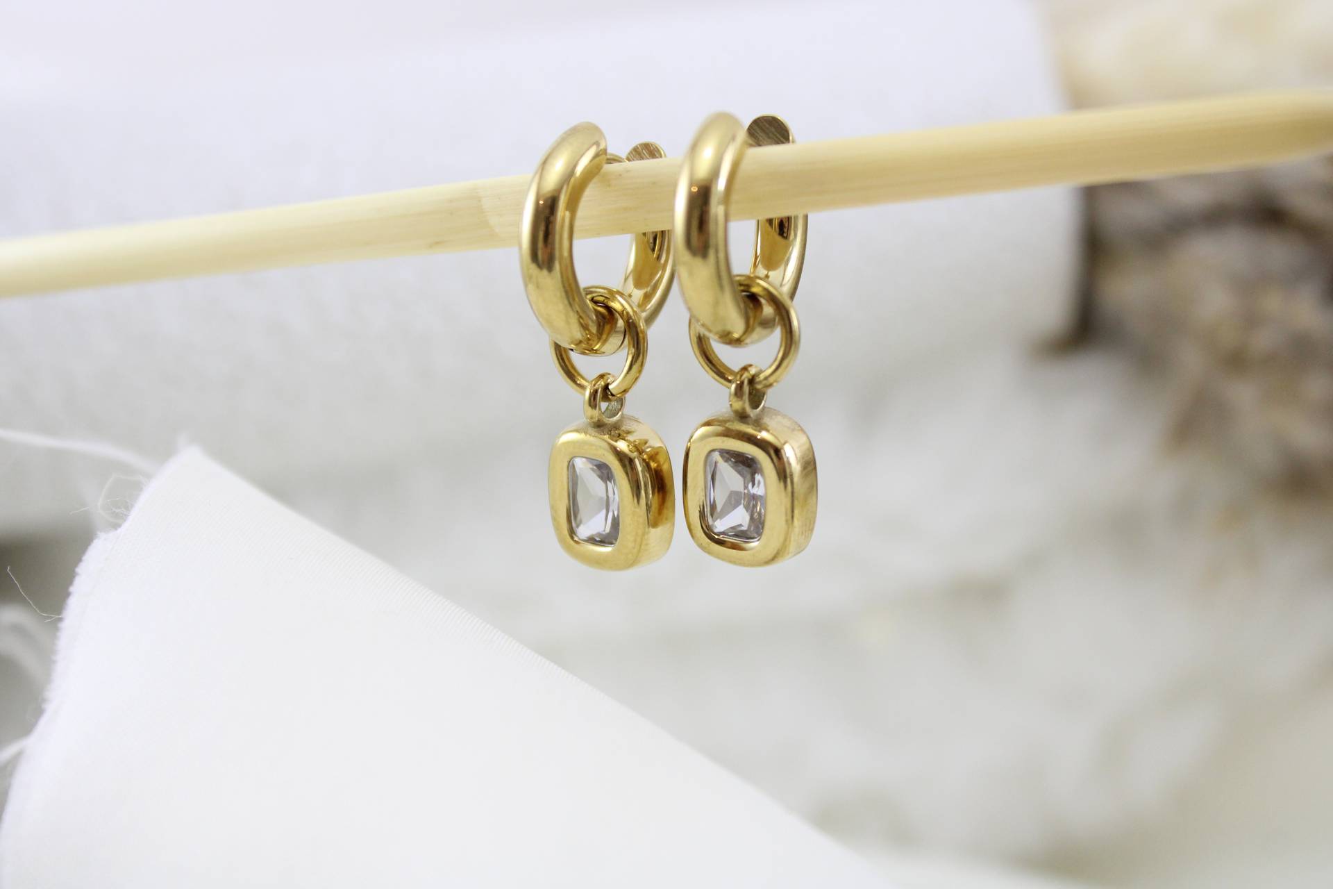 עגילי חישוק עבים בשילוב אבן