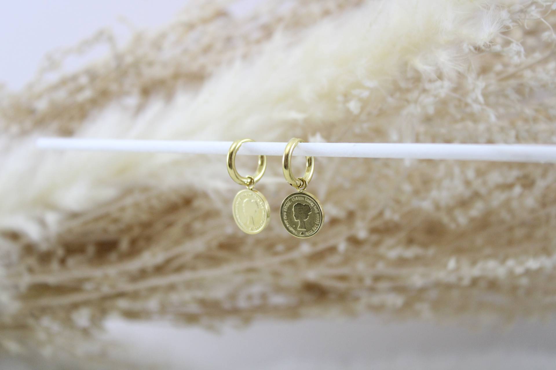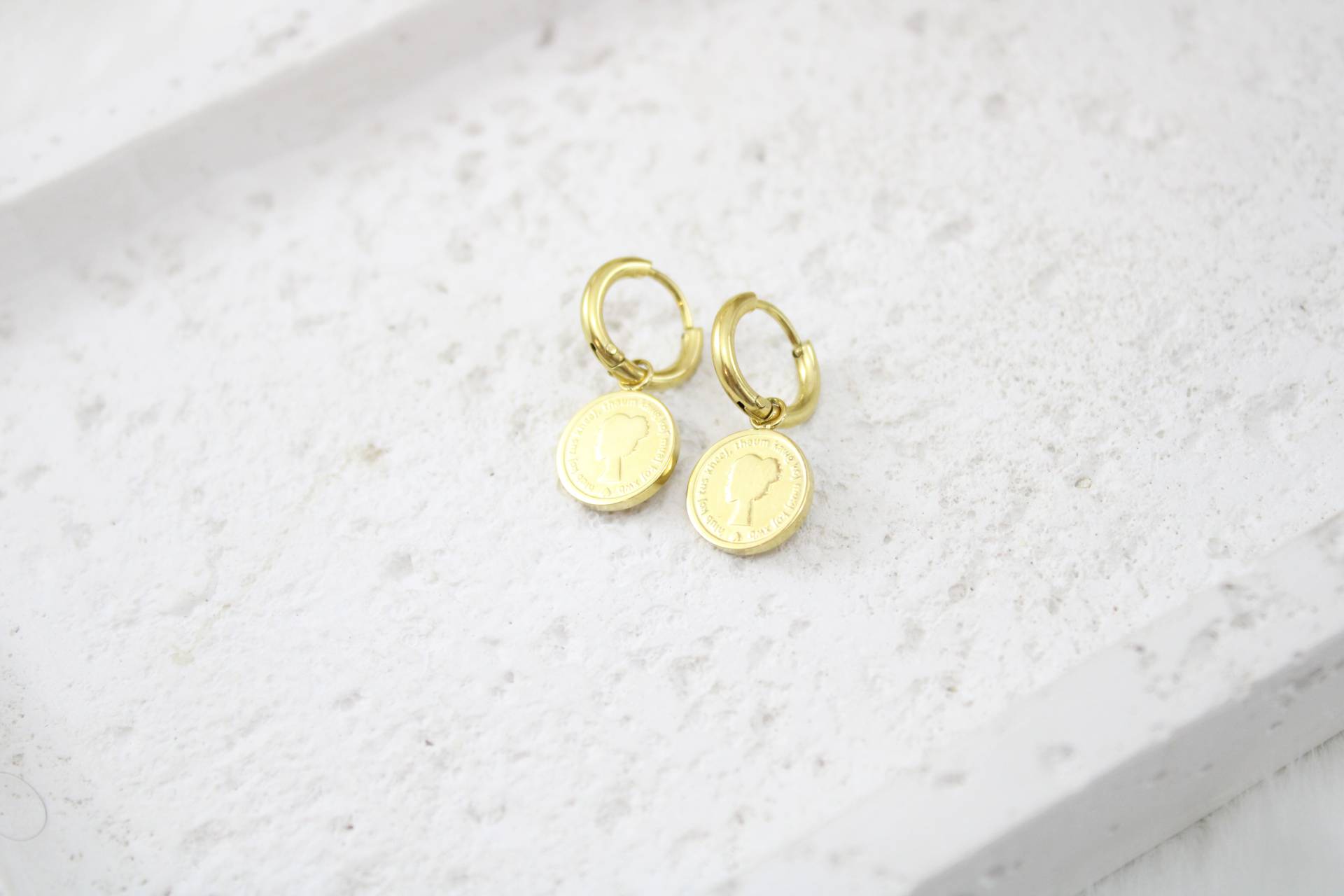 עגילי חישוק קטנים בשילוב מטבע חומר גלם: סטיינלס סטיל בציפוי זהב