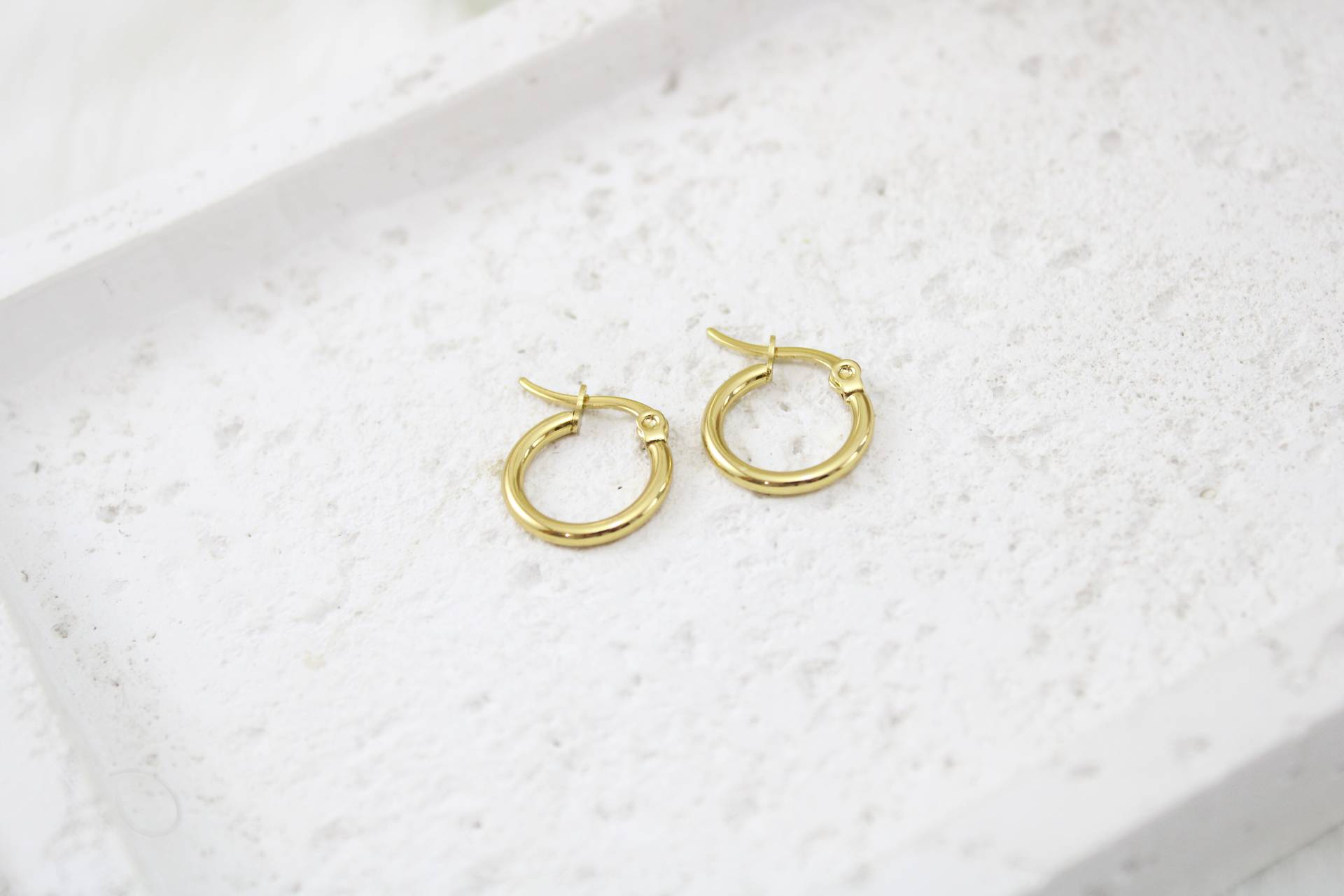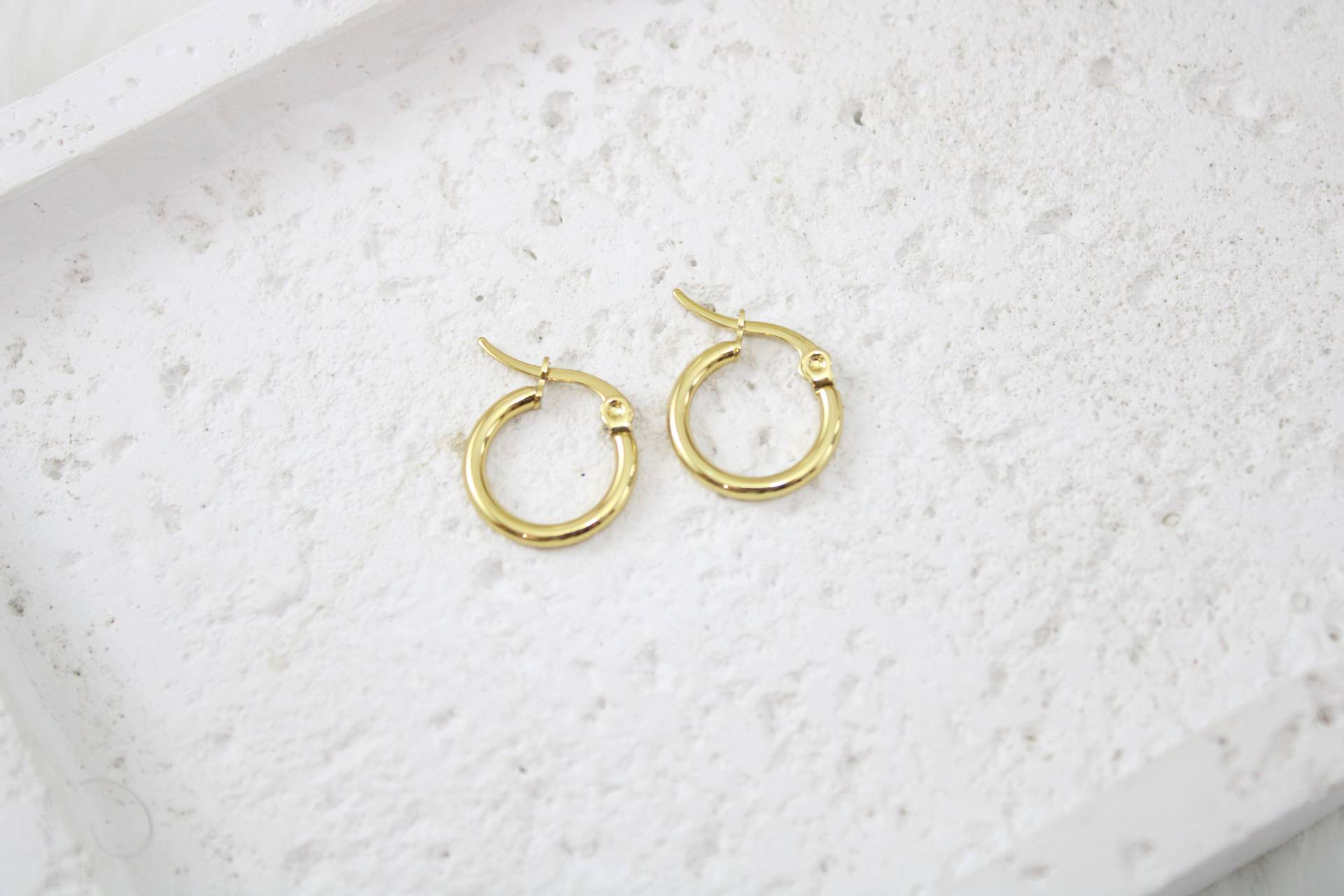 עגילי חישוק קטנים 15 מ״מ בציפוי זהב חומר גלם: סטיינלס סטיל בציפוי זהב