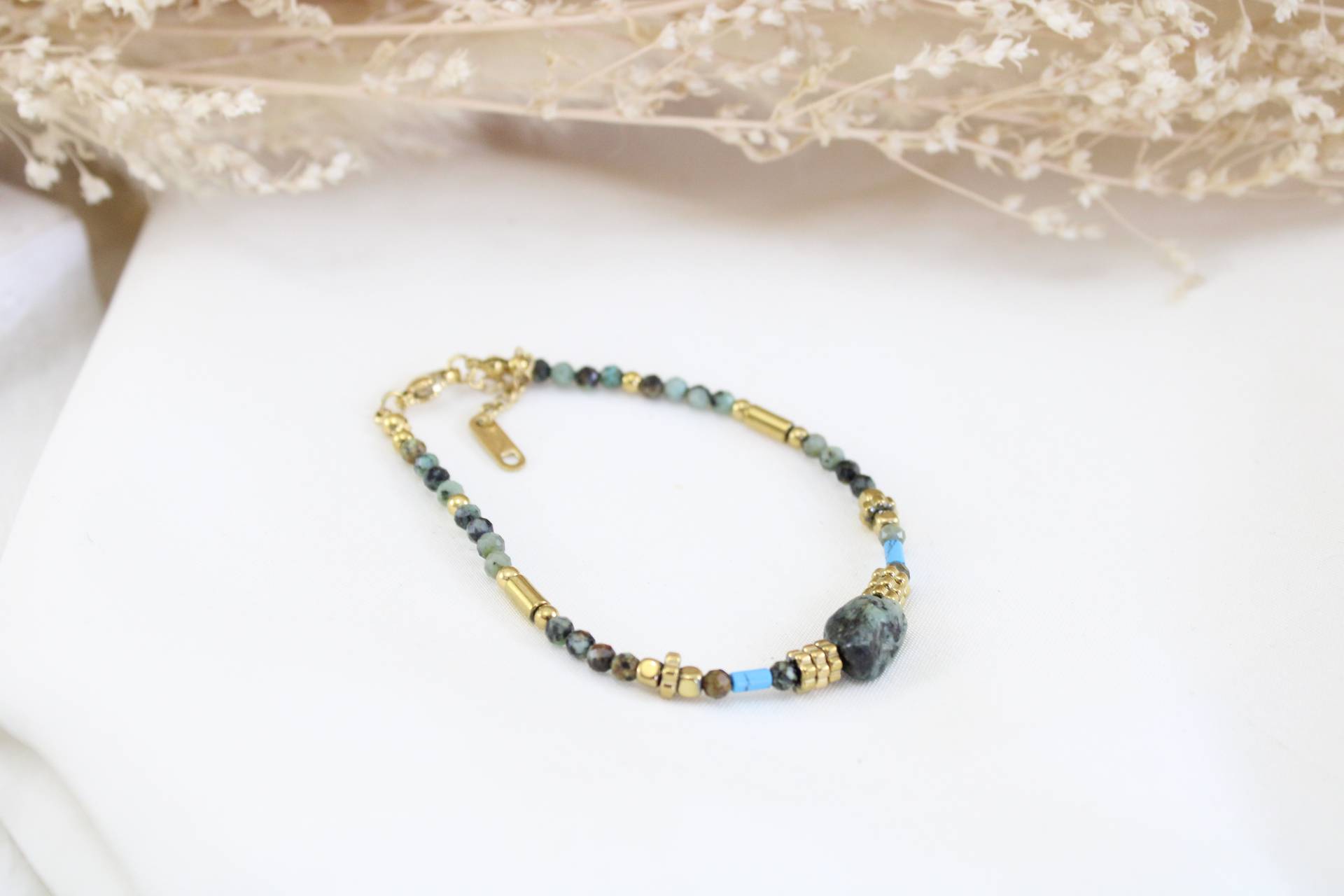צמיד אבני אגת בשילוב אלמנטים בציפוי זהב