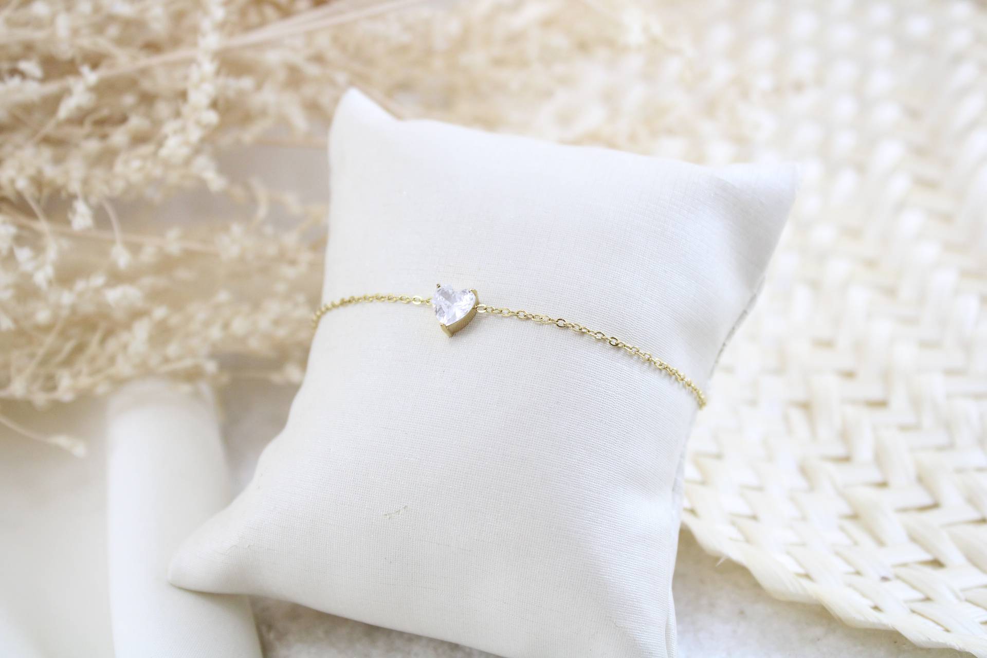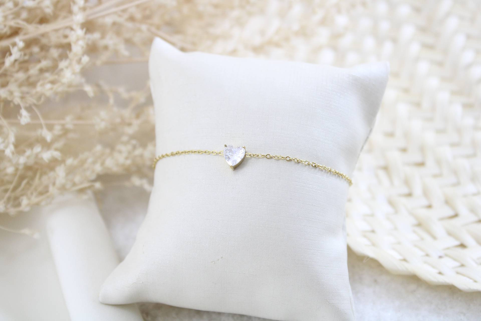צמיד בשילוב לב זרקון בציפוי זהב חומר גלם: סטיינלס סטיל בציפוי זהב