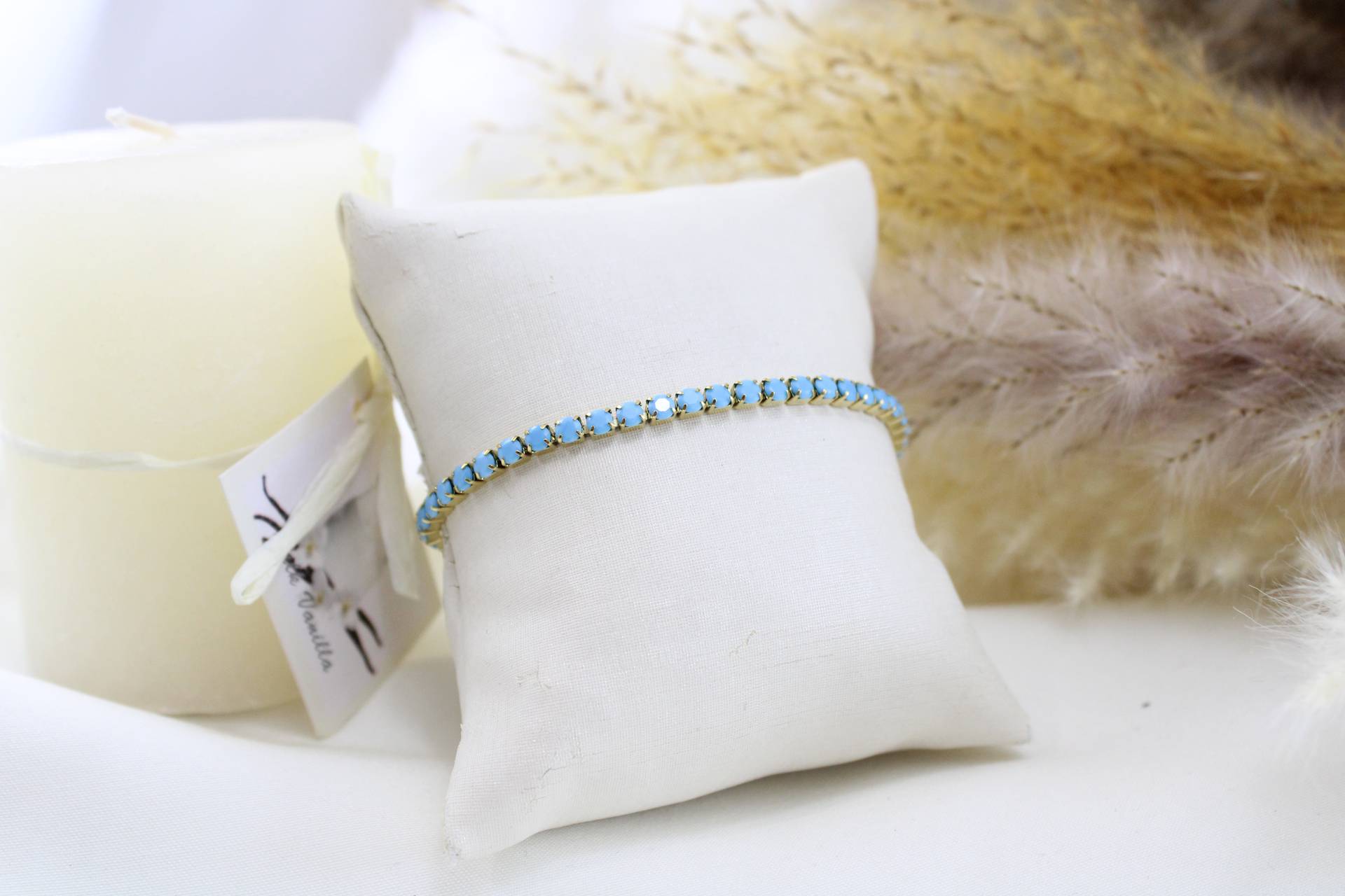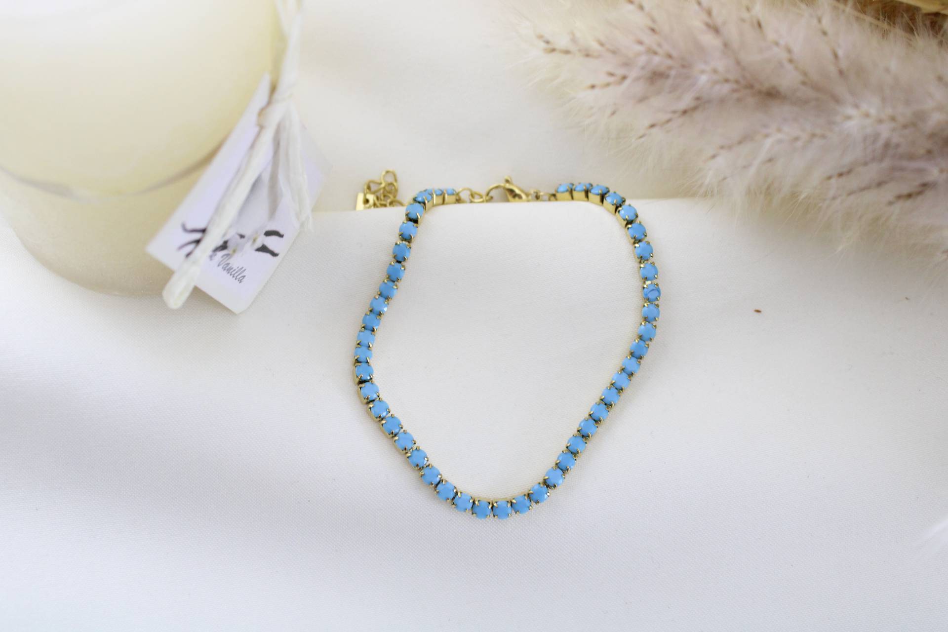 צמיד טניס תכלת בציפוי זהב חומר גלם: סטיינלס סטיל בציפוי זהב