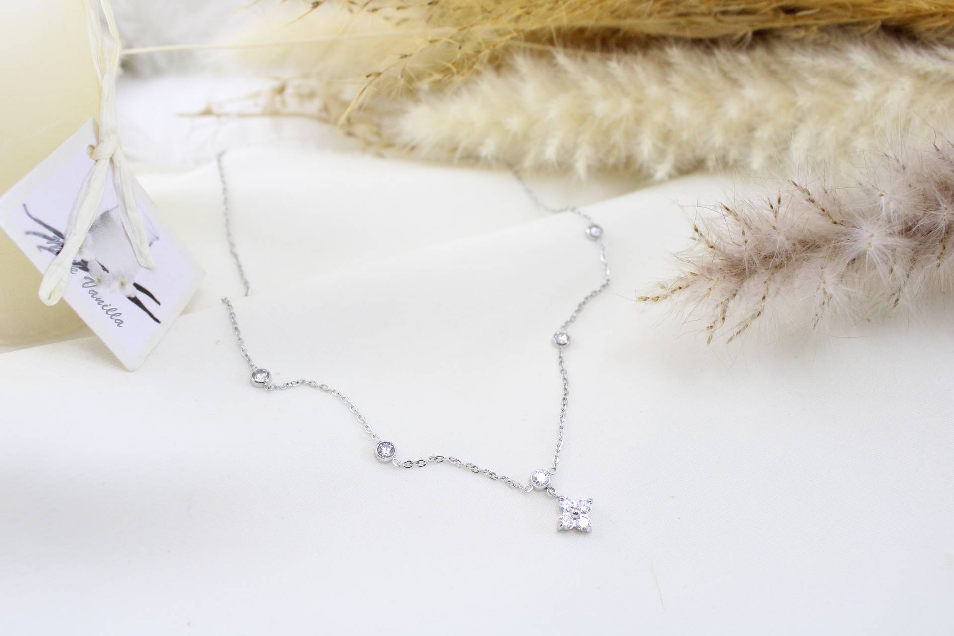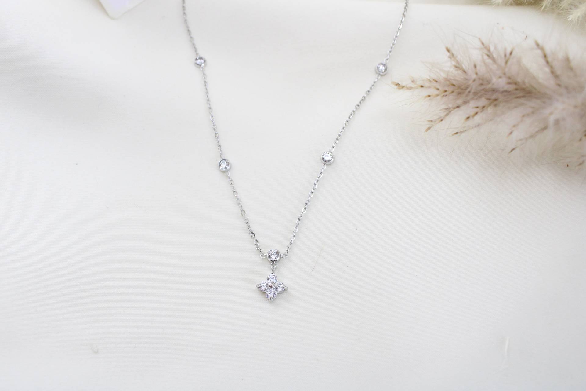 שרשרת אבנים בשילוב פרח משובץ חומר גלם: סטיינלס סטיל