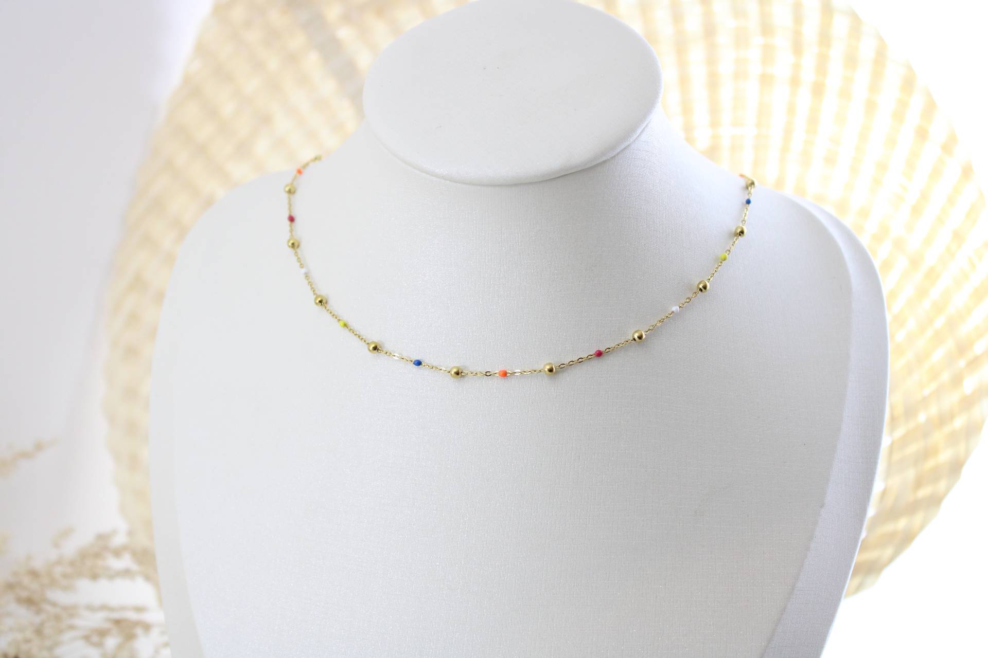 שרשרת אבנים צבעוניות בציפוי זהב חומר גלם: סטיינלס סטיל בציפוי זהב
