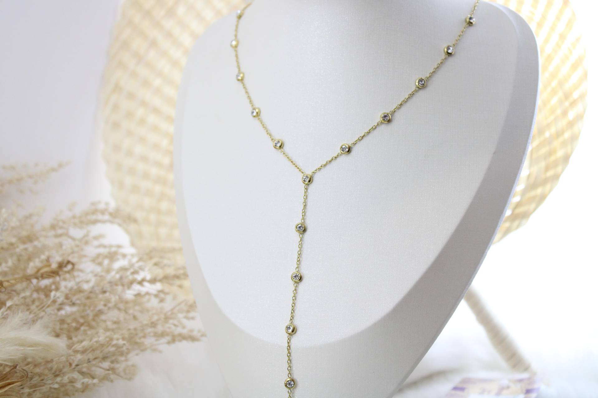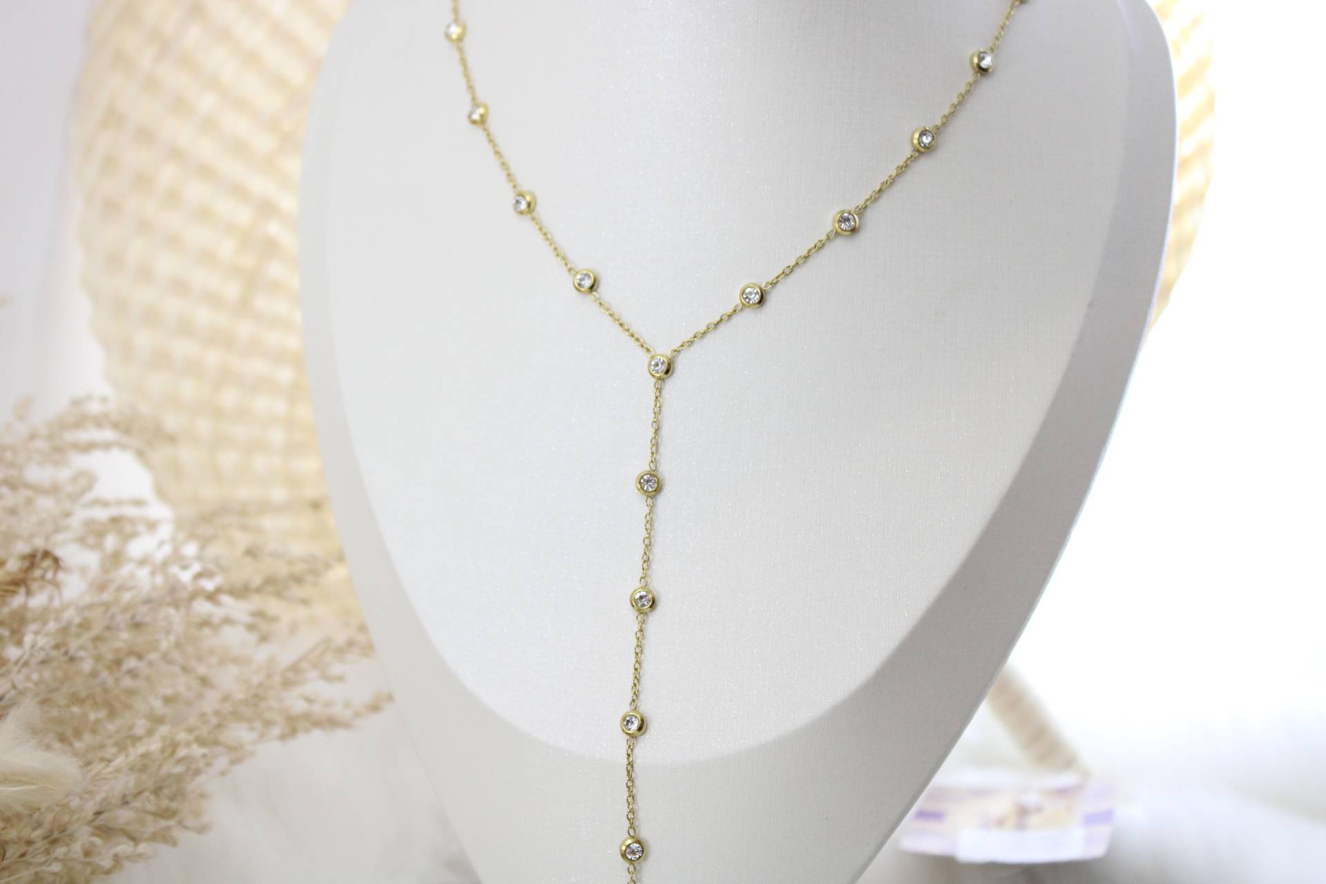שרשרת ארוכה נופלת בשילוב זרקונים עבים חומר גלם: סטיינלס סטיל בציפוי זהב