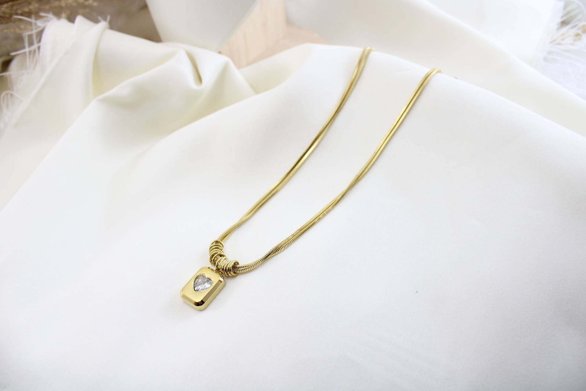 שרשרת ארוכה עבה בשילוב לב חומר גלם סטיילס סטיל בציפוי זהב