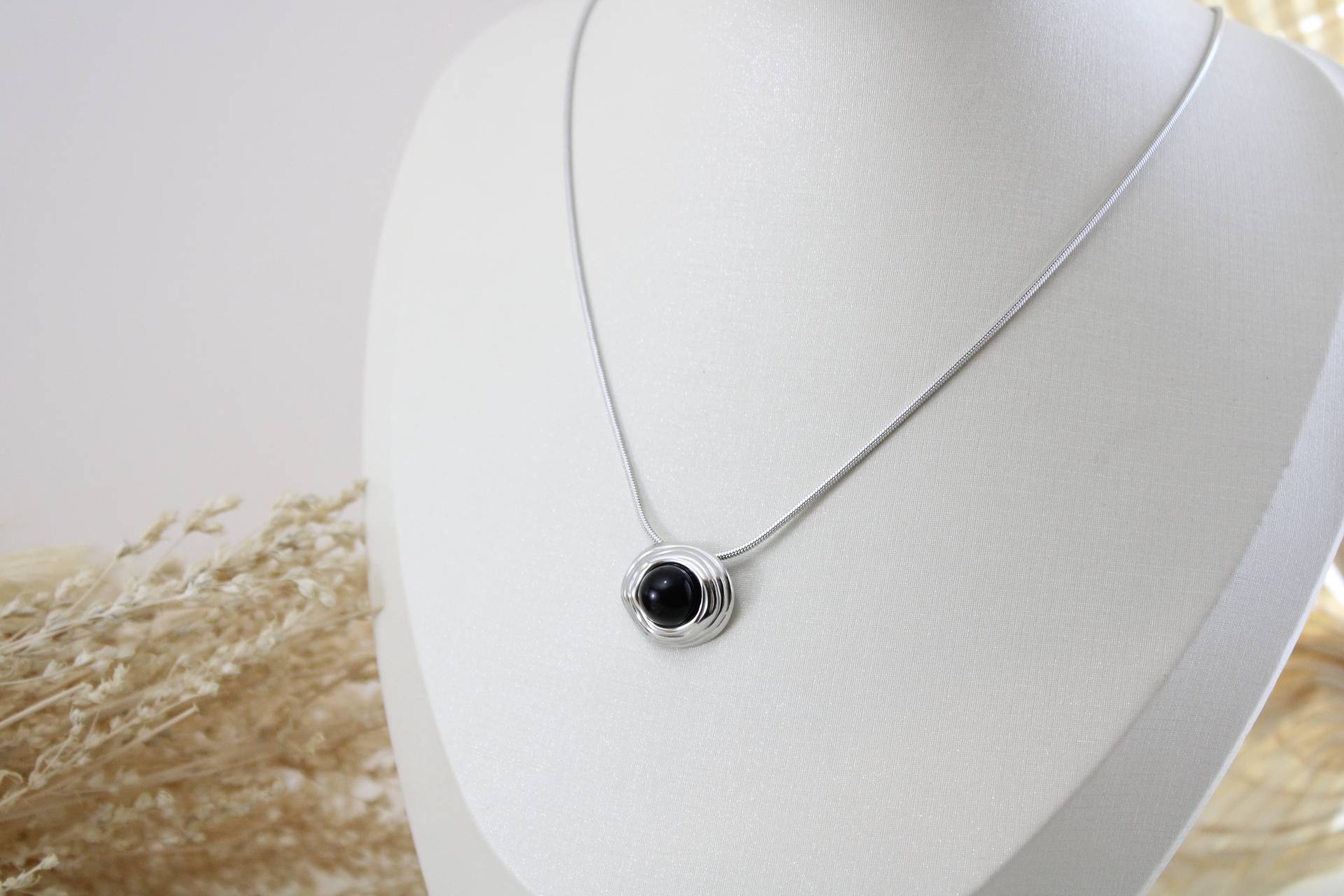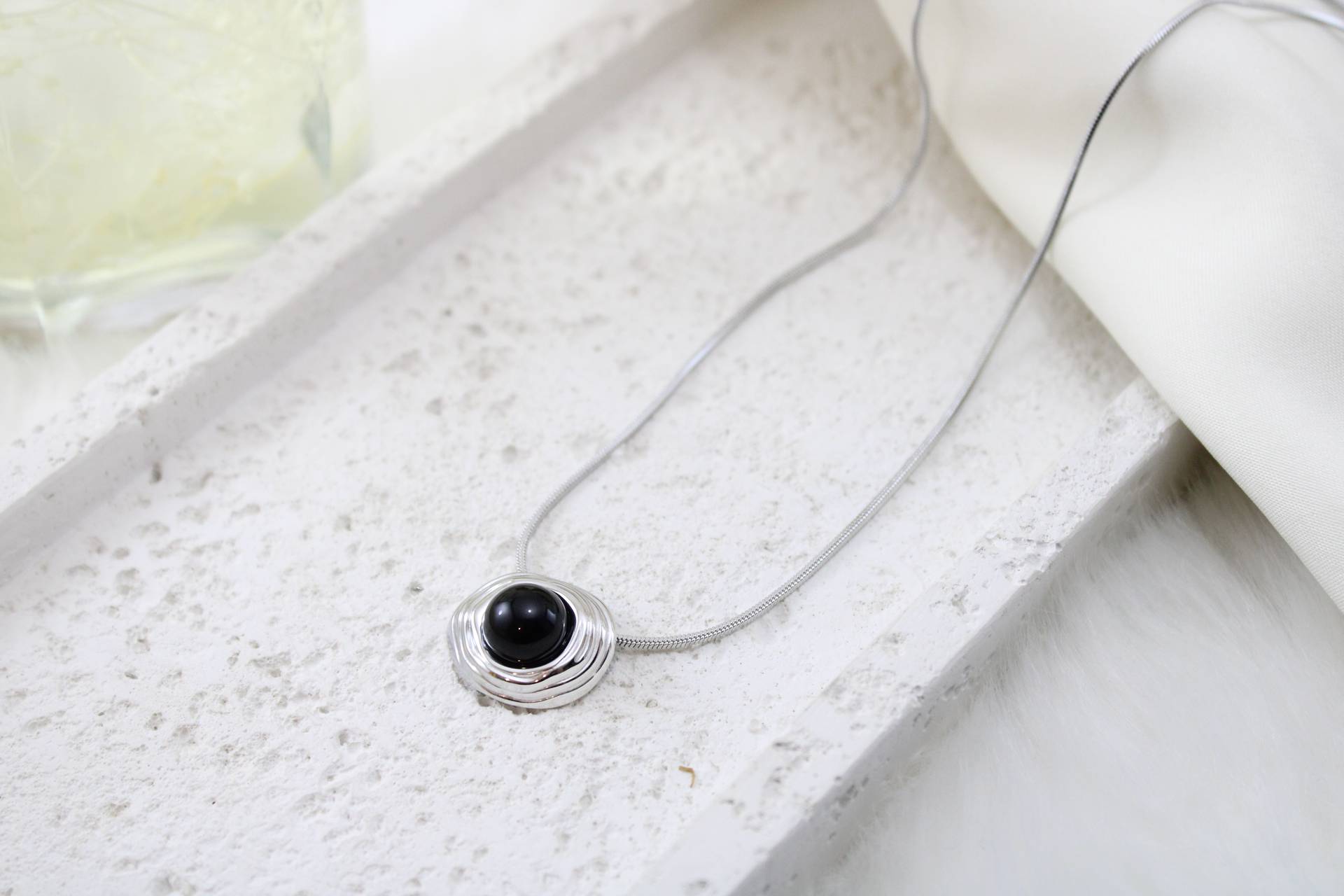 שרשרת בשילוב אבן שחורה חומר גלם: סטיינלס סטיל