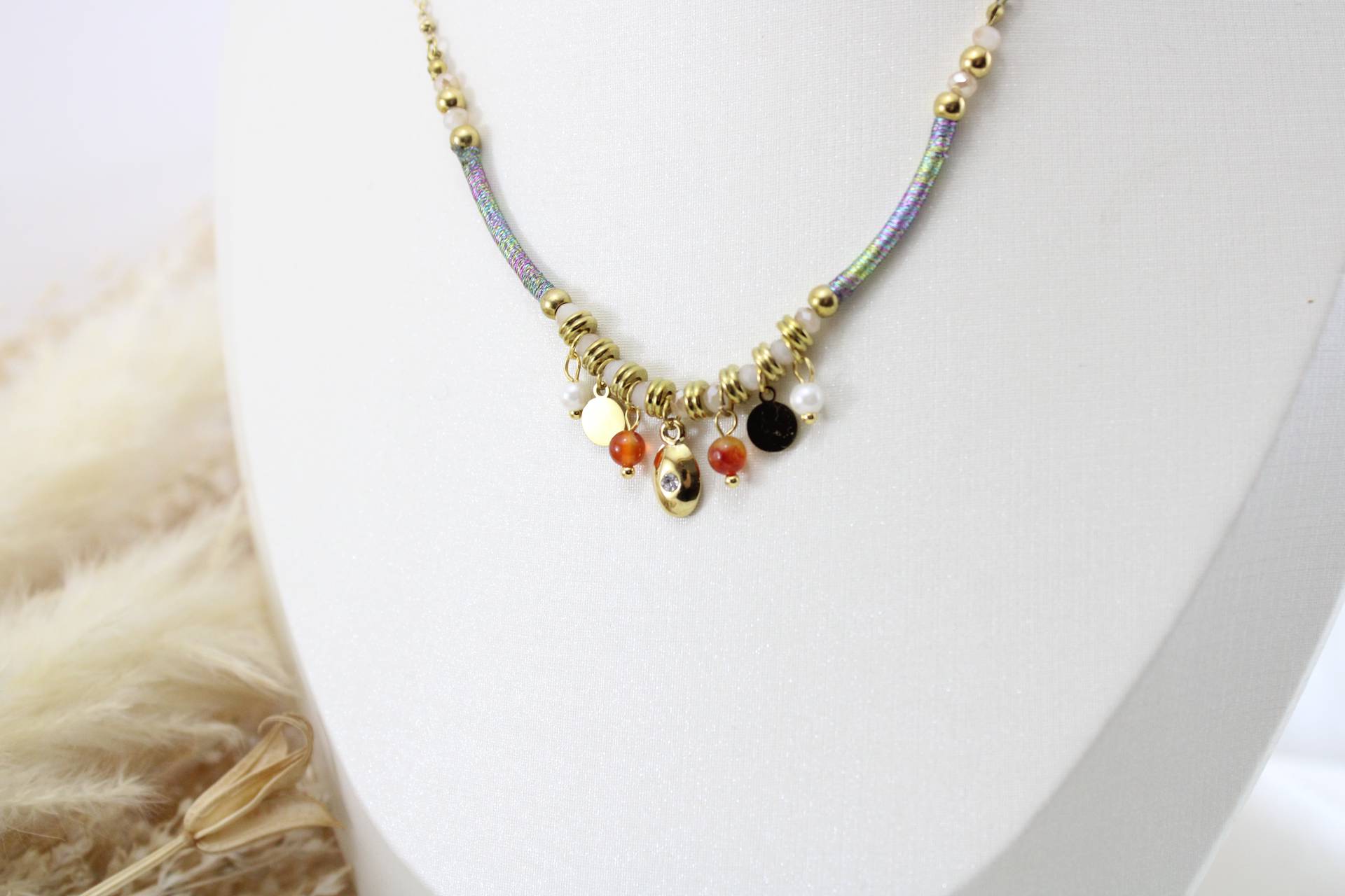 שרשרת בשילוב אלמנטים בציפוי זהב חומר גלם סטיילס סטיל