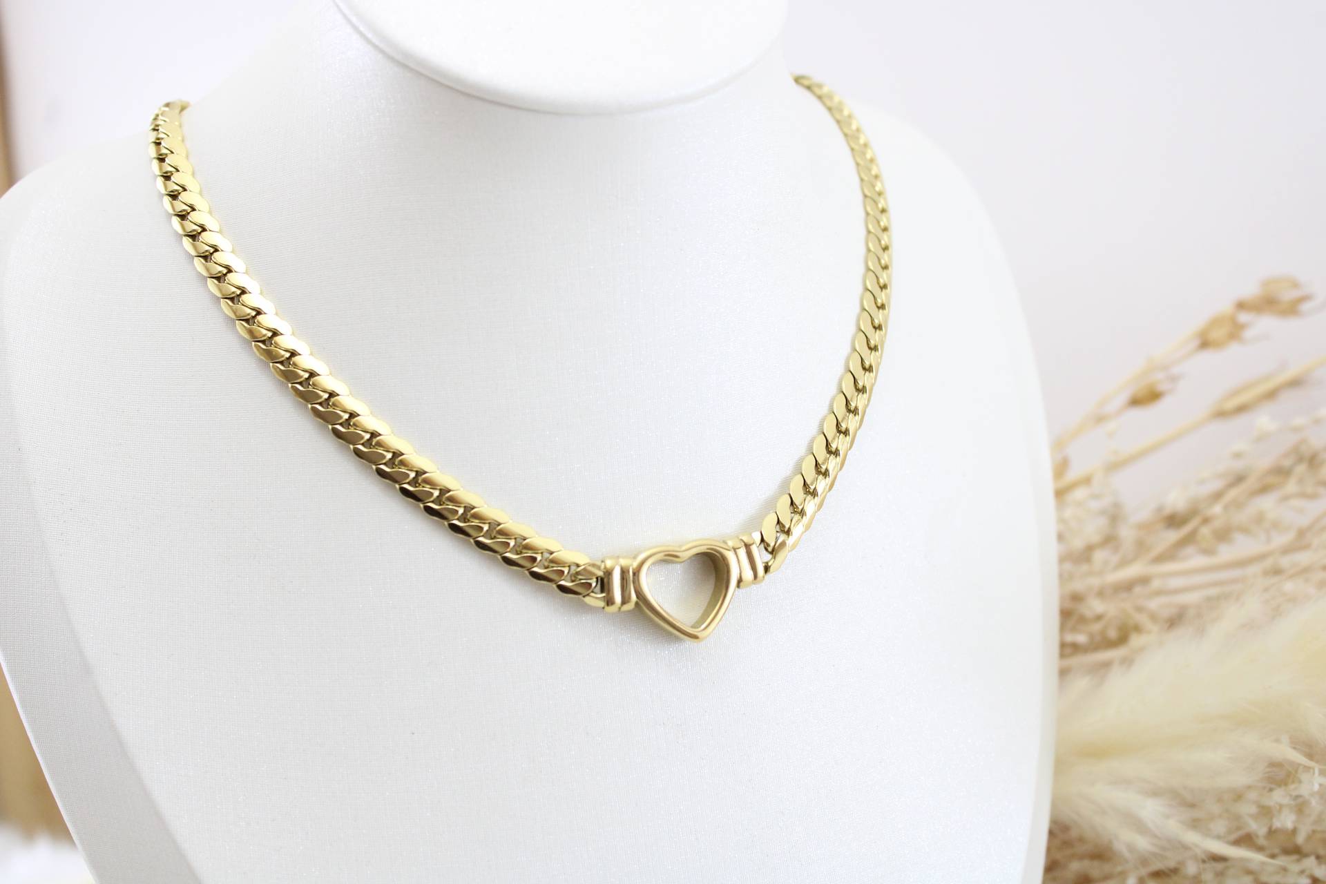 שרשרת גורמט לב חלול בציפוי זהב חומר גלם: סטיינלס סטיל בציפוי זהב