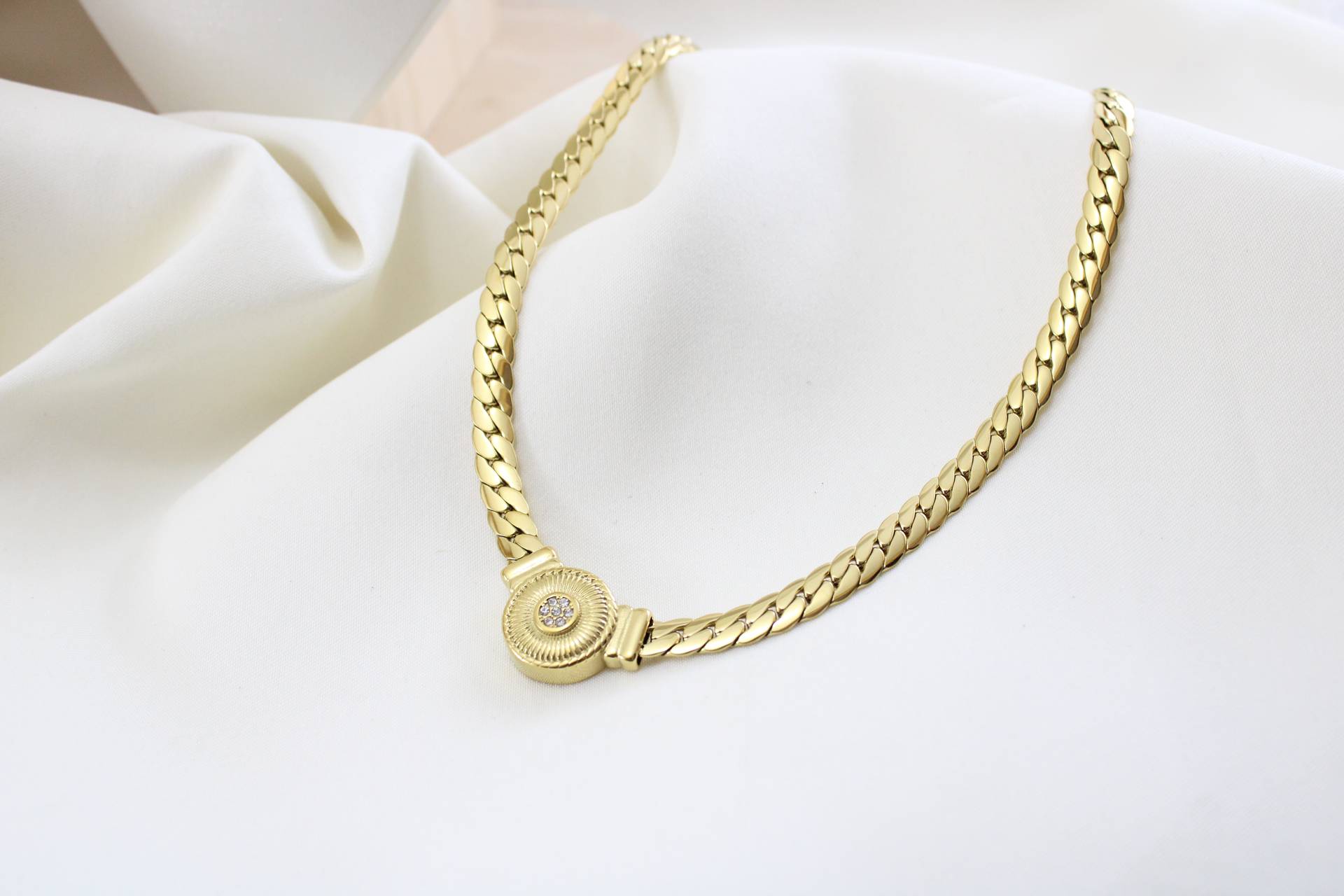 שרשרת גורמט עבה בציפוי זהב חומר גלם סטיילס סטיל בציפוי זהב