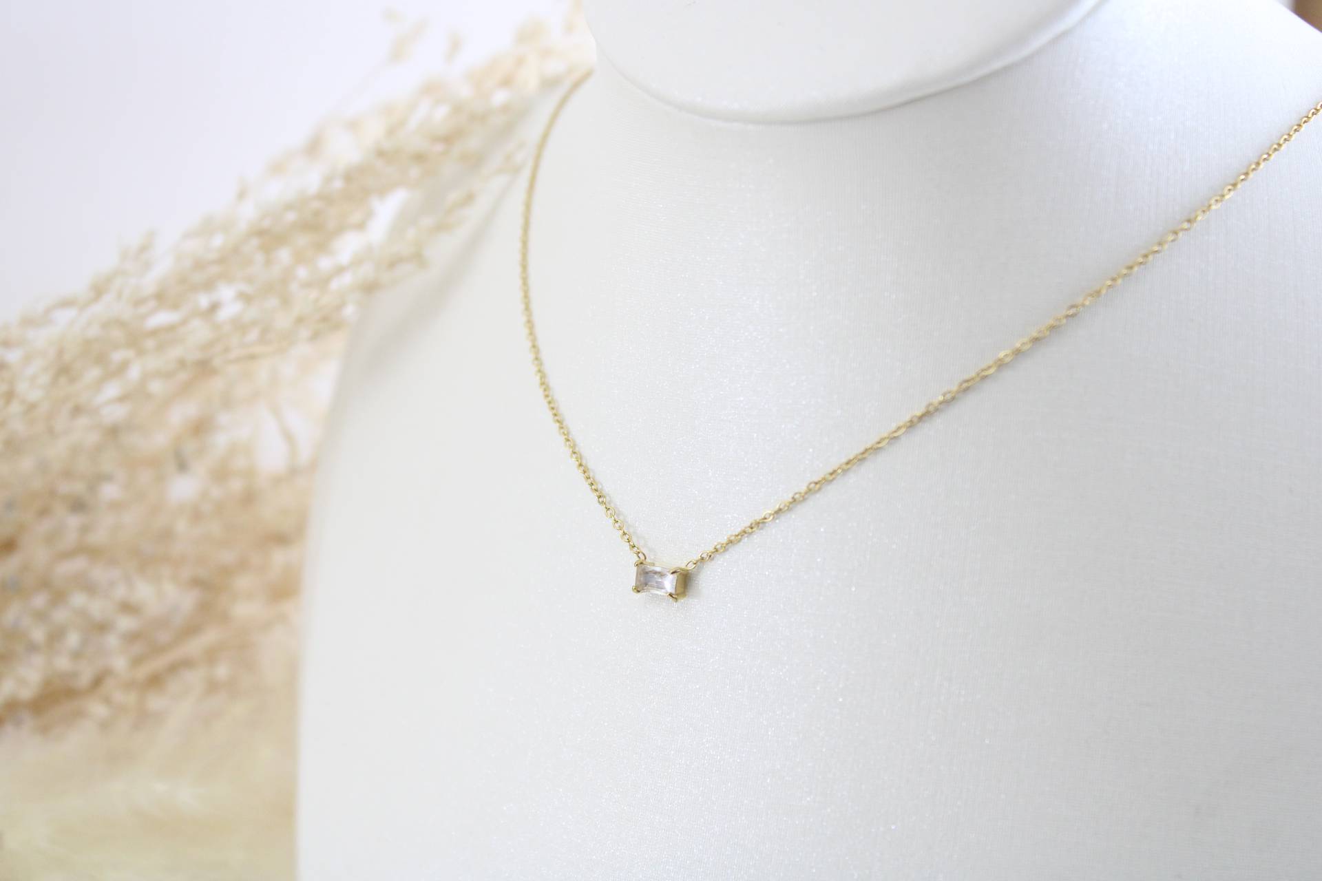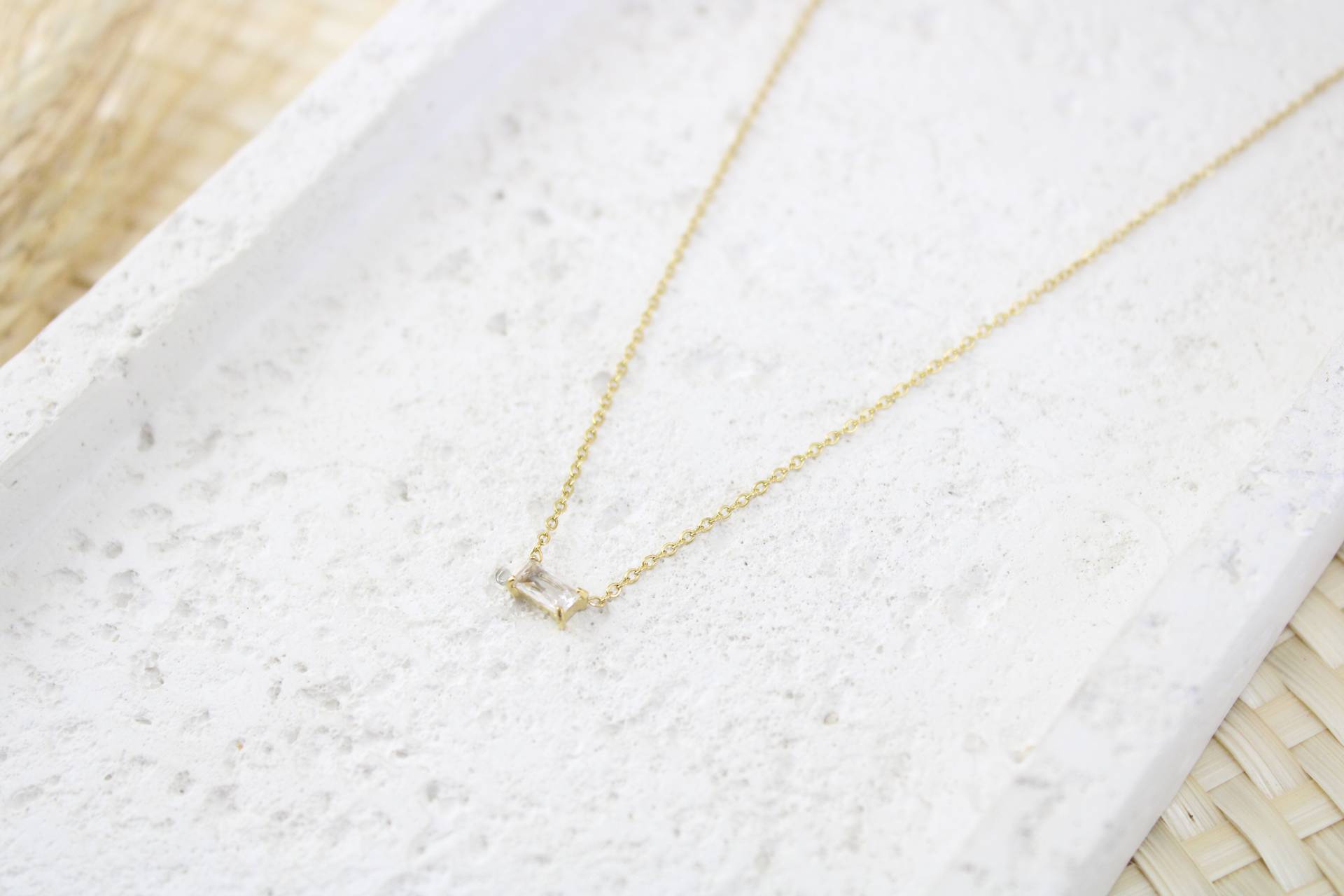 שרשרת זרקון מלבני קטן בציפוי זהב חומר גלם: סטיינלס סטיל בציפוי זהב