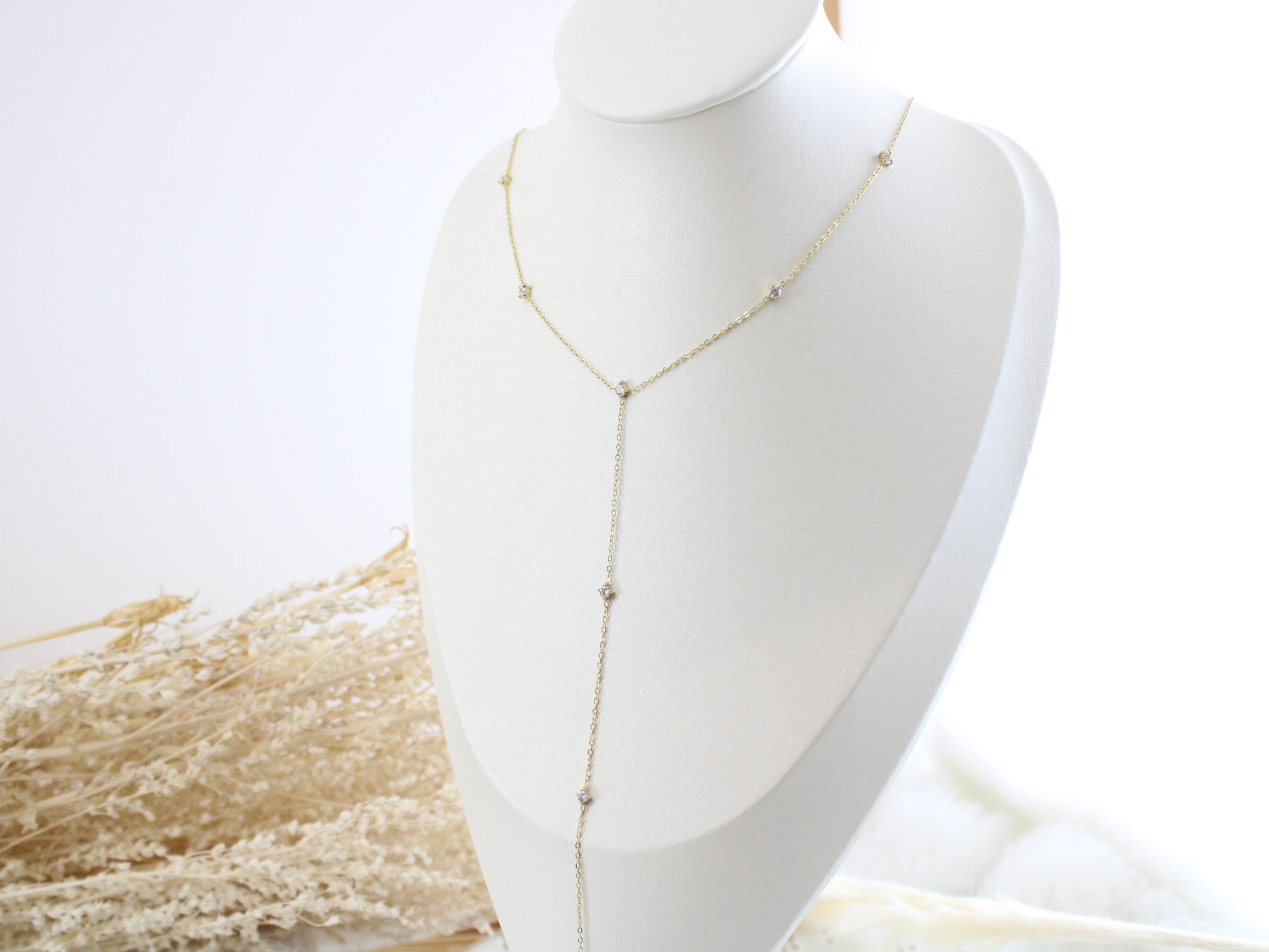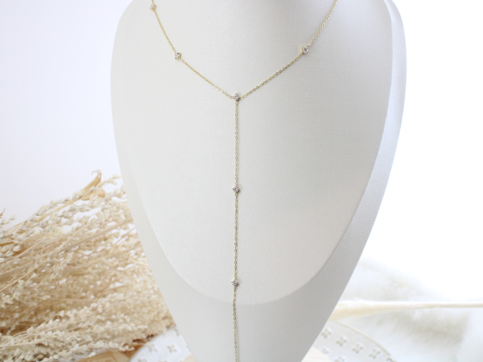 שרשרת זרקונים נופלת בציפוי זהב חומר גלם: סטיילנס סטיל בציפוי זהב