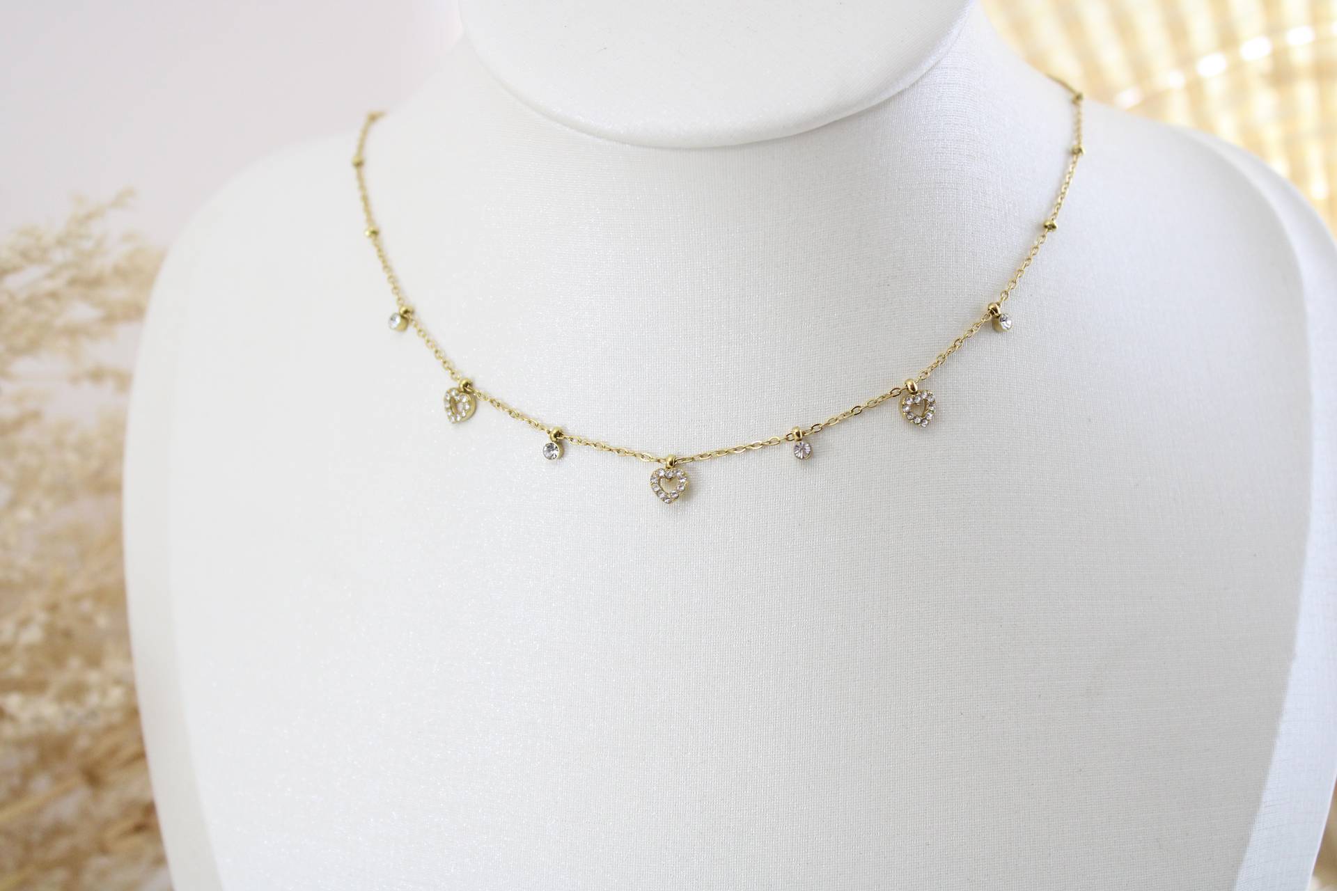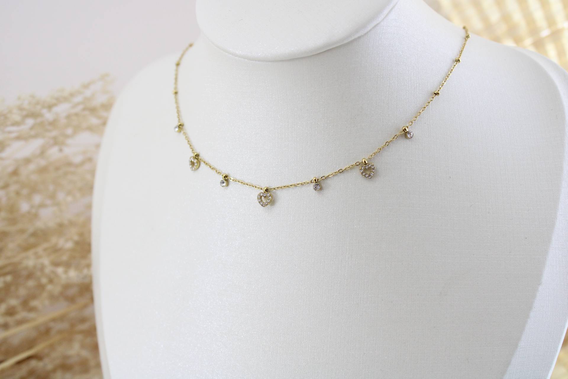 שרשרת לבבות חלולים קטנים משובצים בציפוי זהב חומר גלם: סטיינלס סטיל בציפוי זהב