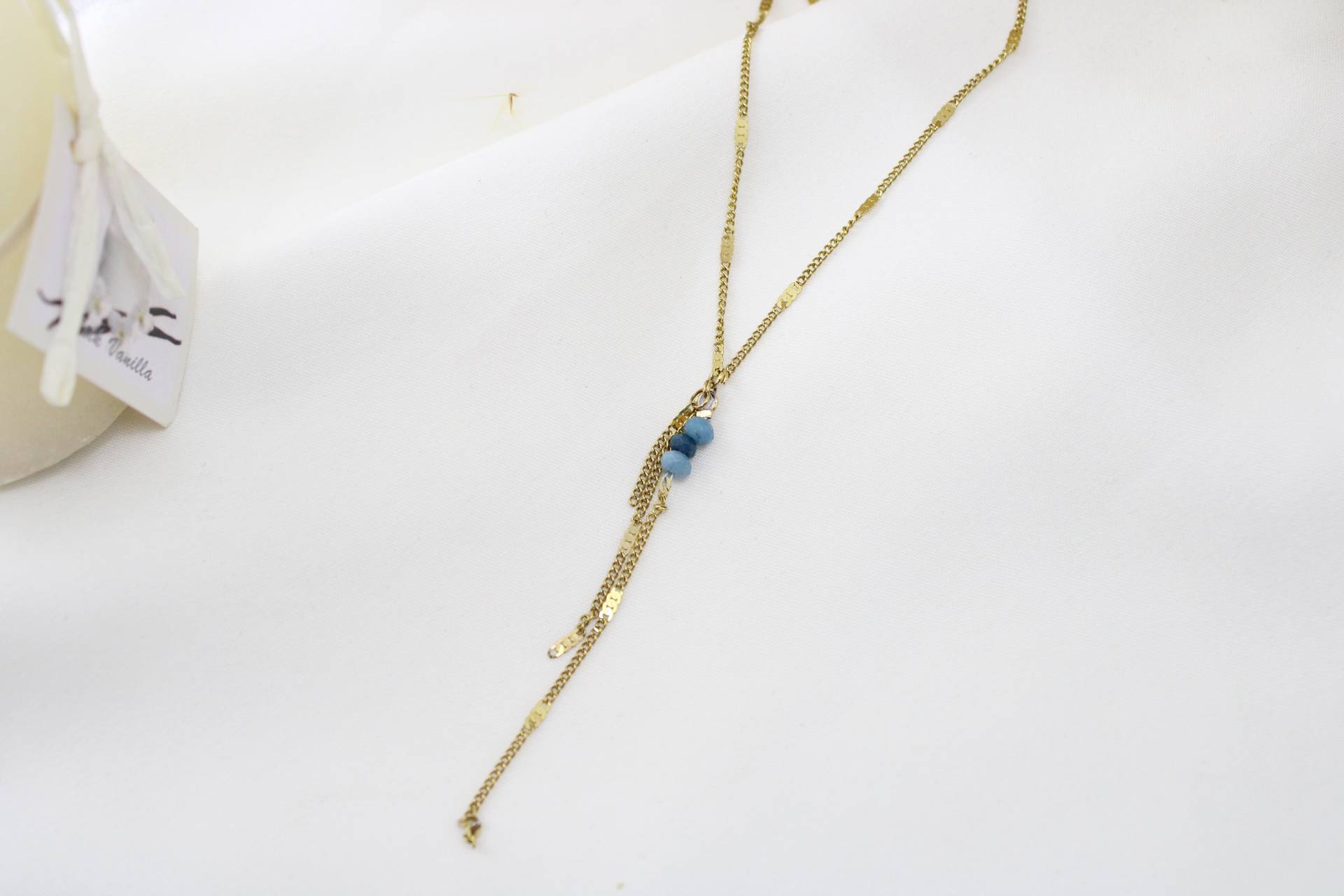 שרשרת נופלת בשילוב אבנים כחולות חומר גלם: סטיינלס סטיל בציפוי זהב