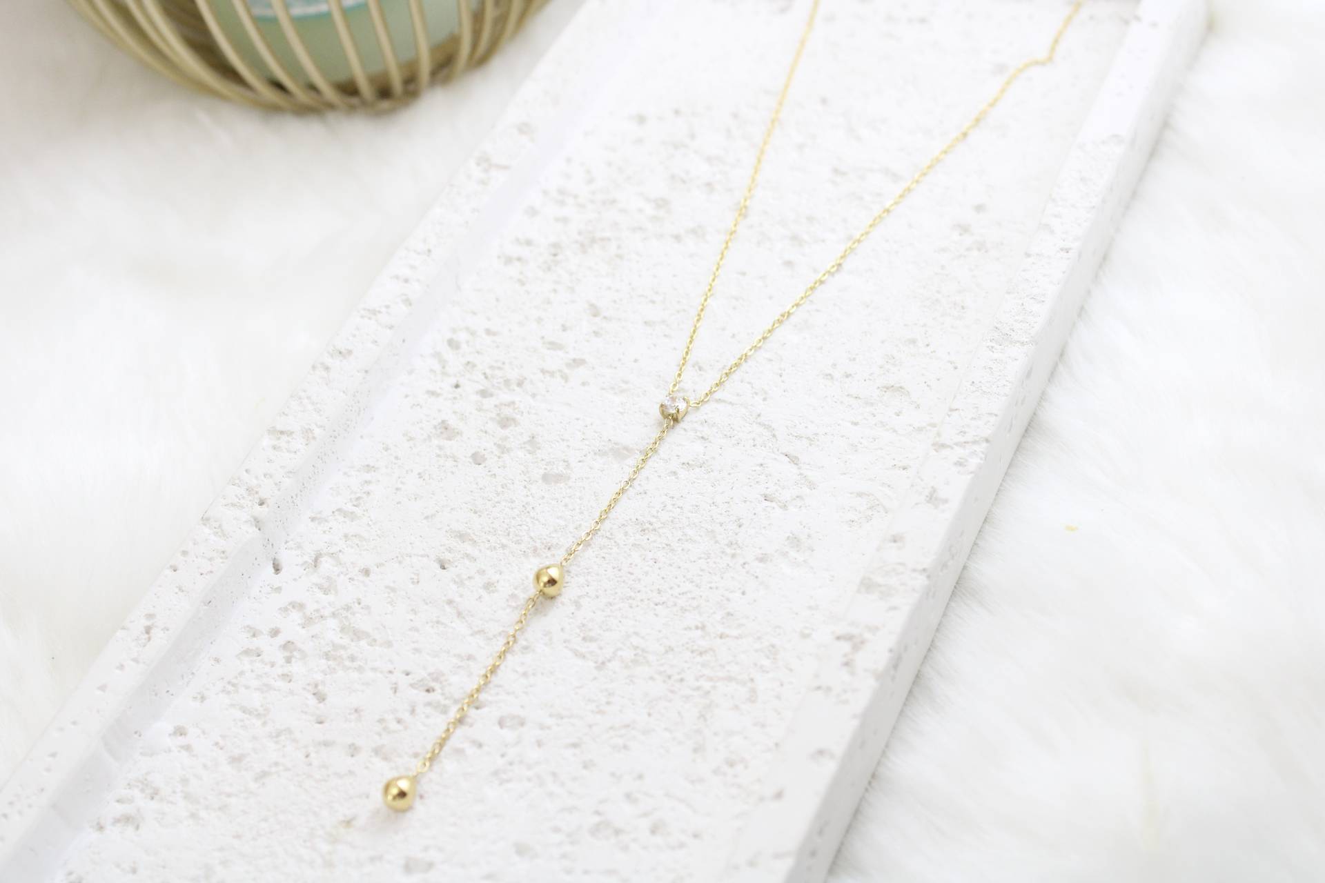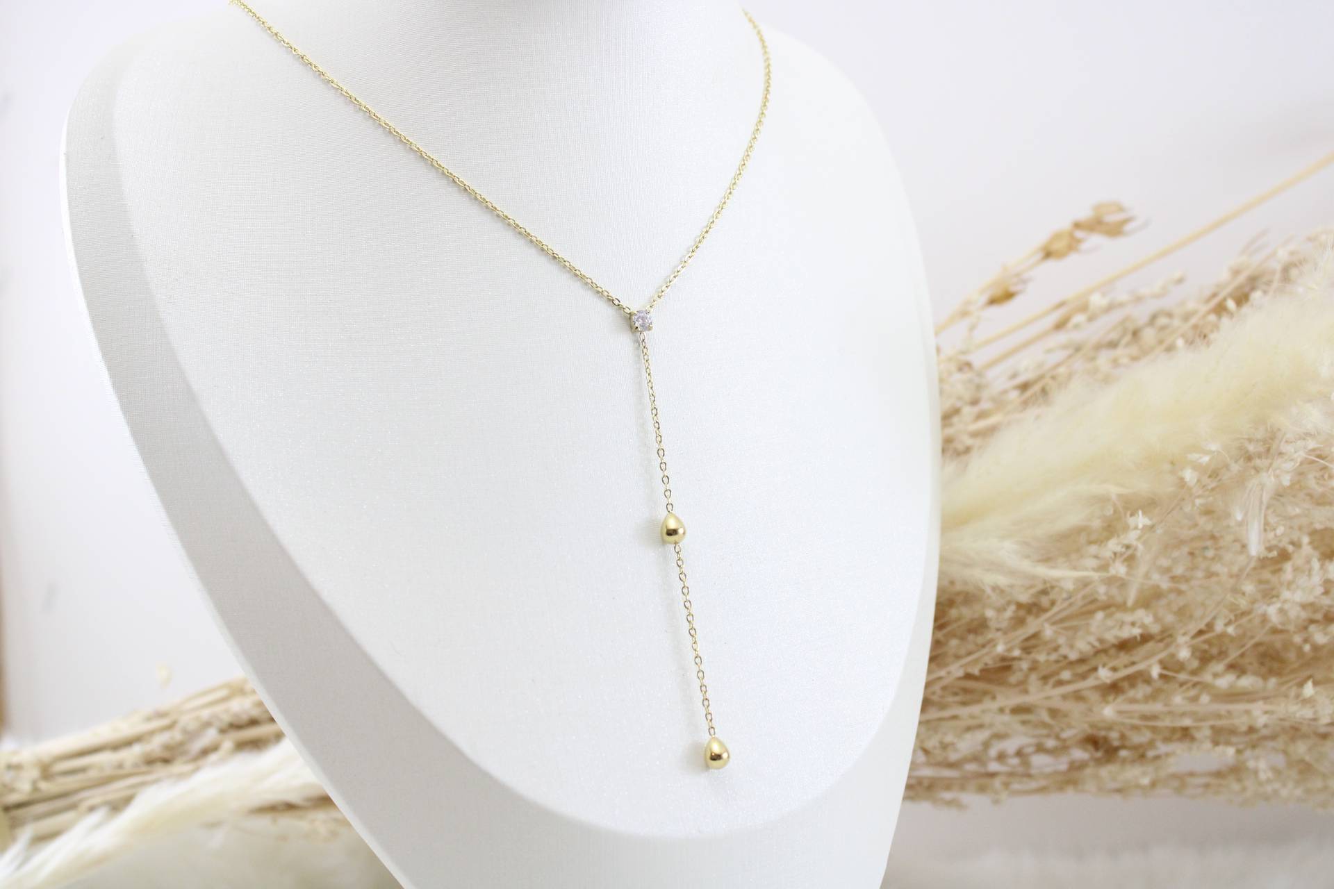 שרשרת נופלת זרקון ועיגולים חומר גלם: סטיינלס סטיל בציפוי זהב