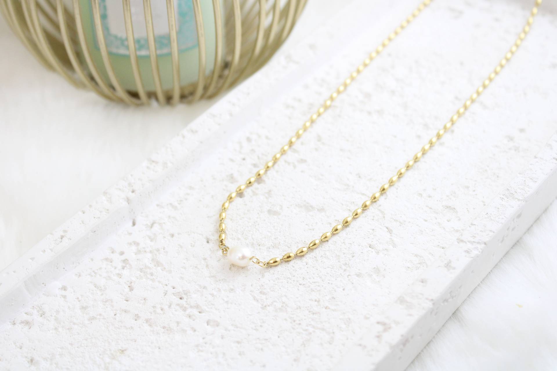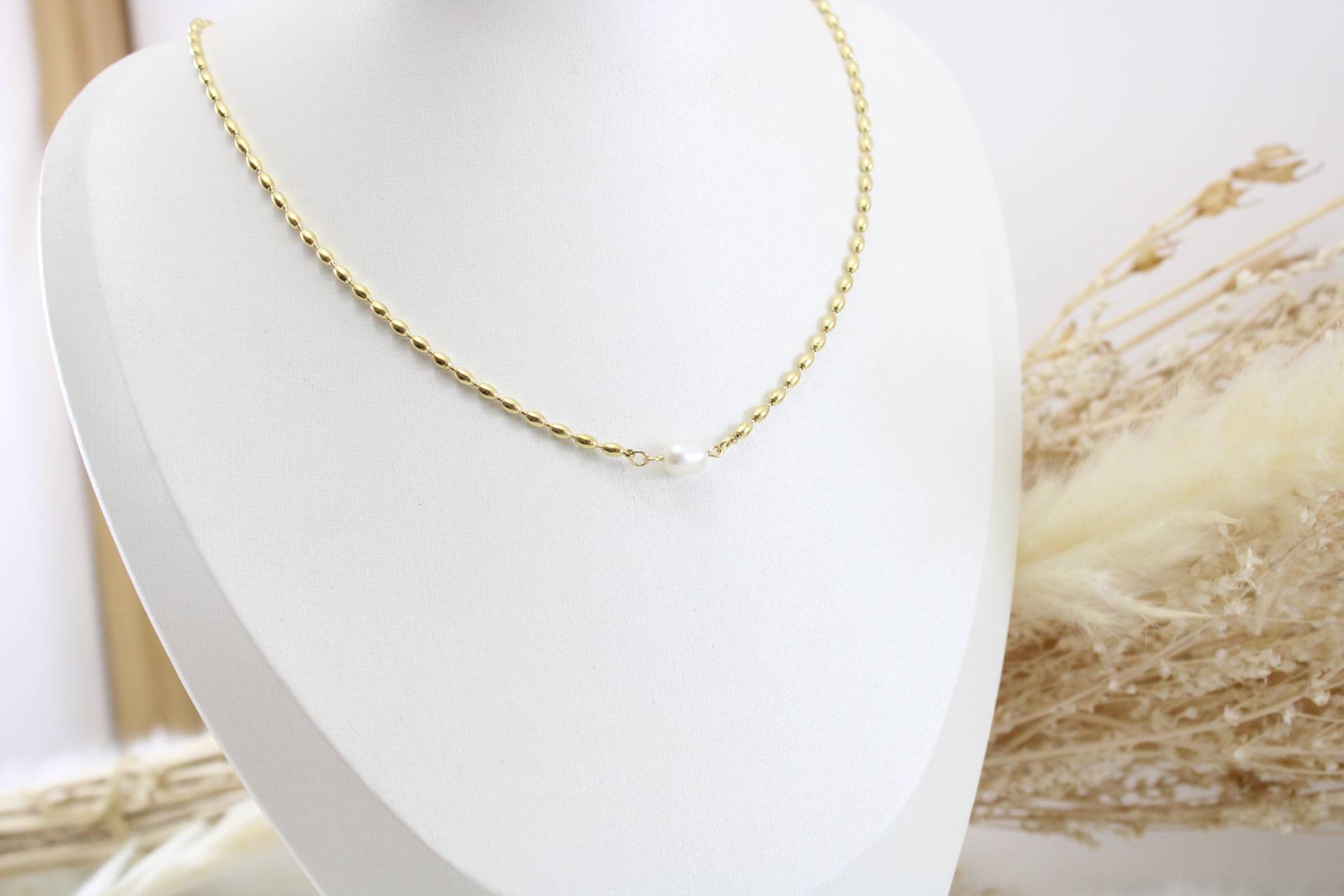 שרשרת פנינה מעוצבת חומר גלם: סטיינלס סטיל בציפוי זהב