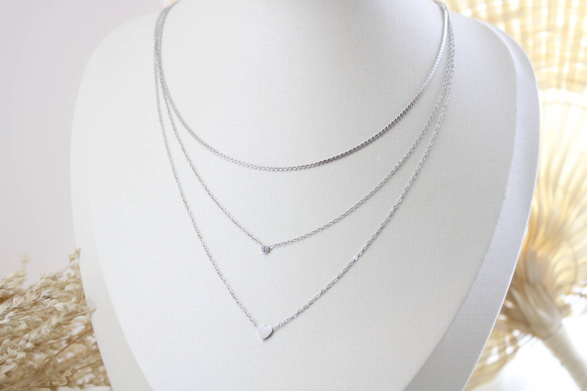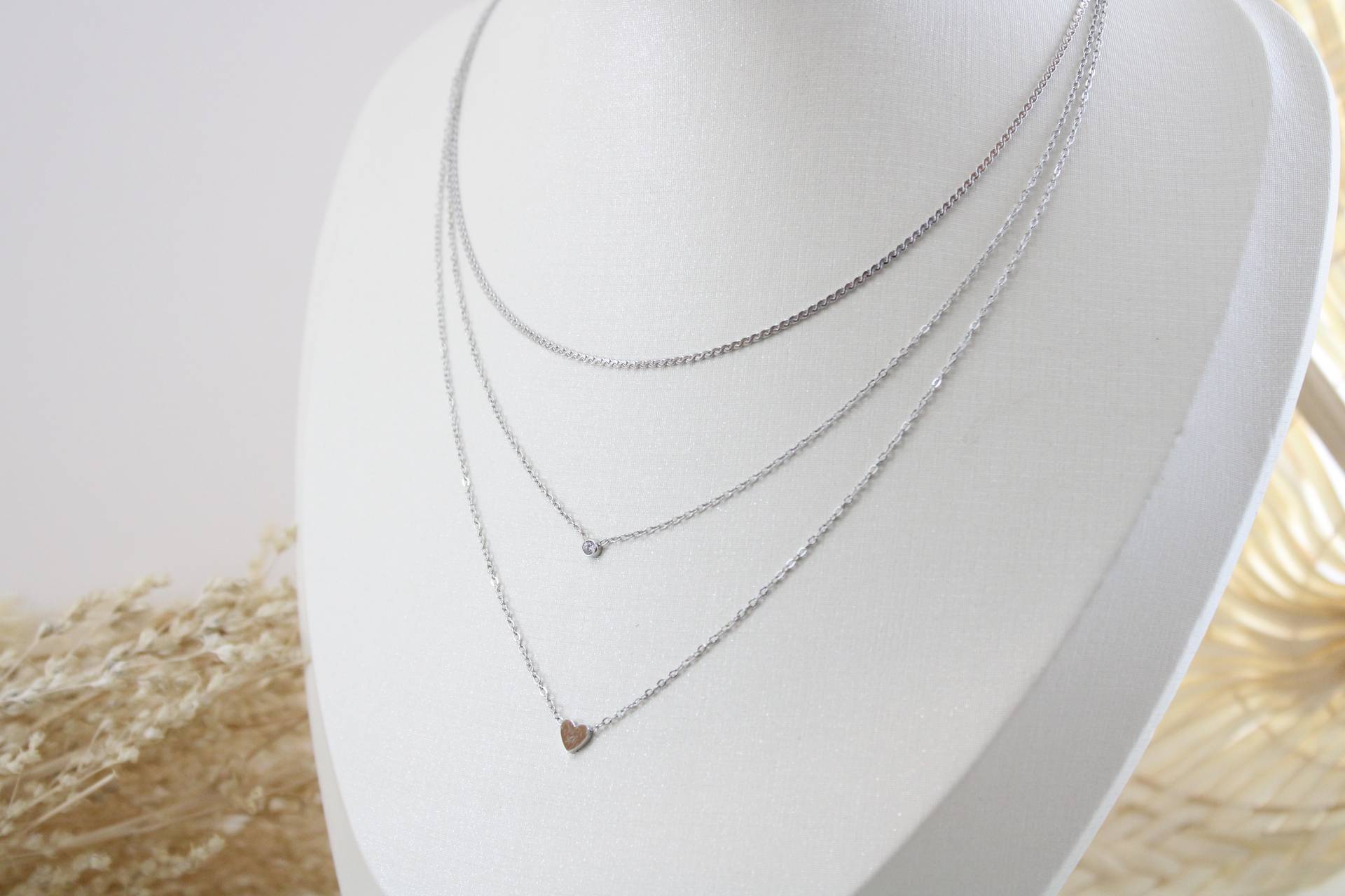שרשרת שלישייה בשילוב זרקון ולב חומר גלם: סטיינלס סטיל